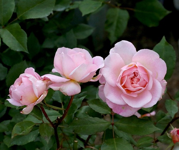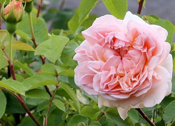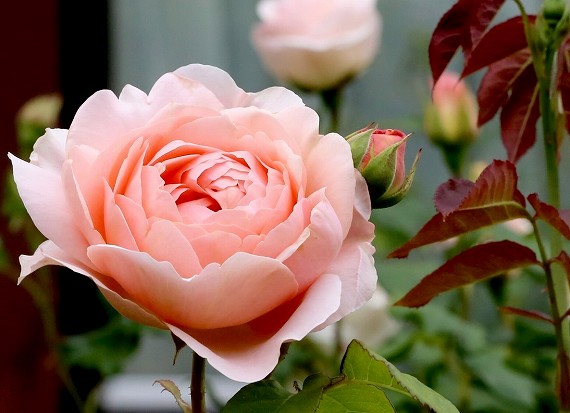(2022年5月26日撮影)2022年の薔薇をふりかえって・・・今日ご紹介するのはイングリッシュローズの薔薇、エブリン。(2022年5月29日撮影)バラ、エブリンは透明感のあるサーモンピンク~ソフトピンクの大輪、薔薇栽培に興味を持ち始めたころにこの色に惹かれて取り寄せました。こちらは庭側から見たところ。手前のいっぱいの蕾はバレリーナです。(2022年5月30日撮影)そして、こちらは道路側からの一枚。なにせ、古株なので一時元気がなくなったのですがなんとか持ち直したようでシュートも出てきたので今年も順調にハイシーズンを迎えられるようにと願っています。にほんブログ村ご訪問有難うございます。お手数ですがクリックよろしくお願いします。
