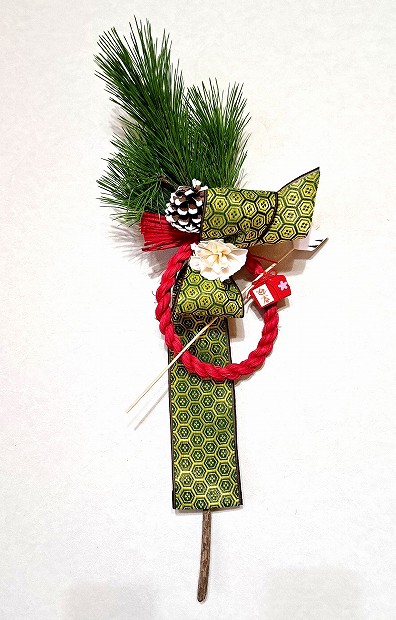 そろそろお仕事はじめの皆様も多いころかと・・・お正月休みはいかがお過ごしだったでしょうか。今日は教室での生徒様が作った松飾のご紹介をさせていただきます。こちらは赤いしめ縄リースとフレッシュの松にお正月ピックを添えて手作りしました。ここで使われたピックは、破魔矢。身にかかる災いである魔を破り、幸せに暮らせるようにという願いを込めた縁起ものです。こちらは水引でつくられた鶴。鶴は千年、亀は万年。 長寿はめでたく (^▽^)/金色の丸い輪は、ゴールドの竹の輪切りです。こちらは扇面のパーツも使った正月飾りです。やはり、正月らしく扇面のパーツも使いたいですね、末広がりですから・・・今年こそは、平安で穏やかで、末広がりに幸せが広がる一年となるように願わずにいられません。にほんブログ村ご訪問有難うございます。お手数ですがクリックよろしくお願いします。