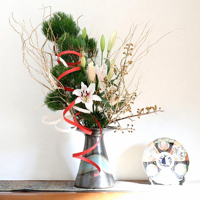 あけましておめでとうございます。皆様には、2023年いかがお迎えになりましたか?本年のご多幸を心からお祈り致します。旧年中は、当ブログへのご訪問、コメントありがとうございました。ブログ仲間の皆様の暖かいコメントに励まされ長すぎるコロナ禍も、なんとかやり過ごして変わりなく過ごせております。今日のいけばなは、我が家の玄関の今年のお正月花。山光松(さんこうまつ)とオリエンタルリリー、桐の実、雲竜柳ゴールド、アクセントに、紅白のクラフトテープを使いました。今年こそ、平穏な一年になるようにと願って生けました。今年もどうぞよろしくお願いいたします。にほんブログ村ご訪問有難うございます。お手数ですがクリックよろしくお願いします。