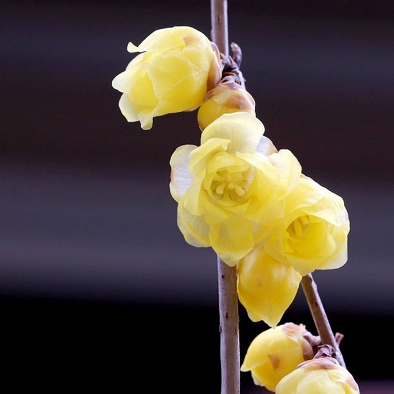 (2023年1月15日撮影)2007年にネットでポチして我が家にやってきた素心蝋梅(ソシンロウバイ)毎年、新年の庭にビタミンカラーの黄色い花が咲いて、元気をもらえます。(2023年1月15日撮影)実は2007年3月にネットで求めた時は満月蝋梅(まんげつろうばい)ということでしたがどうやら、名前間違いのようで我が家のはソシンロウバイみたいです。素心蝋梅は中国中部を原産とし明治時代に渡来、花芯も黄色くなる特徴があり、広く栽培されていますね。(2023年1月15日撮影)水仙に似た香りもありその名の通り、蝋細工のような半透明の花びらは特徴的で美しいですね。(2023年1月15日撮影)本来、4m位とかなり大きな木になるようですが我が家では幸い(笑)あまり大きくならずにすんでいます。その分、花が限定的な幹にしか咲かないのが残念!幹は沢山あるのに、なぜか一本の幹から分岐した枝にだけ咲きます。それでも、写真で見るといっぱい咲いているので狭いところに植えていることだし、良しとしましょう・・・(・m・ )にほんブログ村ご訪問有難うございます。お手数ですがクリックよろしくお願いします。