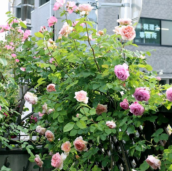 とっても成長がよく、大輪で背の高い薔薇ですね。