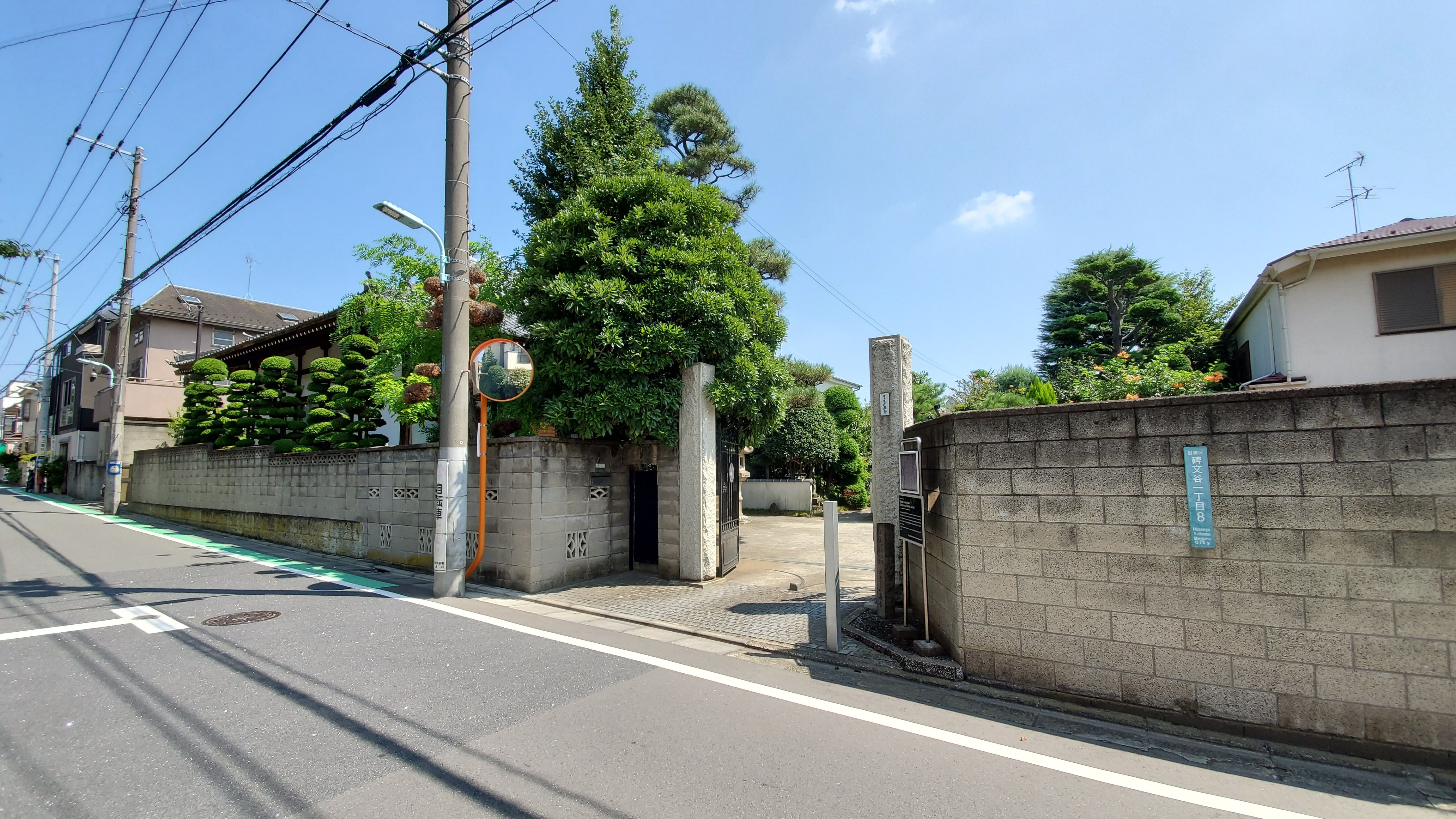 以前、素通りした際に撮った山門だけは1枚載せたことがあったはずだけど、昨日モーニング帰りに寄らせていただきました。西小山のポエムには幾度も通っていますが、なんとなく通勤道ではなくなっていたので久しぶりに歩いた道です。 山門……円融寺の東側です。 本堂……法呑山 正泉寺…浄土宗のお寺で本尊は阿弥陀如来像とのこと。 元亀3年(1572年)乗誉上人良達存冏和尚が相馬郡に泉應院として創建。麻布櫻田・赤坂溜池付近に移転した際(1590年)正泉寺と改号。その後も移転があり、明治末期から大正期に当地へ来られたそうです。 地蔵菩薩像…… 本堂扁額…… 本堂正面から右手に、端正に刈り込まれた木々に囲まれた通路がありました。奥も深かったんです。表から見ただけでは分かりませんね~ 屋根に守られています……阿弥陀如来坐像かしら? 境内奥にありました。右手方向は墓地……道路沿いに建つ住宅に囲まれていますが、結構広かったです。探し物があったのですが、容易に見つかりそうになかったので即断念しました。墓地はウロウロしたくないし、暑かったしな~ 風車があるから水子地蔵でしょうか? それとも子育て地蔵? 手だけ合わせてきました。 山門前にあった石碑に『名墓 式亭三馬 羽倉簡堂』とありました。私の全く知らない人名ですが、探す姿勢だけは示したのですが…… ちなみに、式亭三馬(しきていさんば)とは江戸時代後期の戯作者(げさくしゃ)で、「浮世風呂」「浮世床」「古今百馬鹿」などが代表作だそうです。文政5年(1822年)47歳で亡くなり、深川雲光院の寺中長源院に葬られたが、関東大震災後に当寺墓地に改装された。墓石台座にある「る」の文字を崩した馬の字(くくり猿)は三馬が経営していた売薬店の商標である。と(東京都教育委員会の掲示)にありました。今度、「る」の字を求めて再チャレンジしてみましょうかしら? 羽倉簡堂(はくらかんどう)とは、1790~1862年、江戸時代後期の儒者・武士とのこと。天保13年(1842年)老中水野忠邦に起用され納戸頭、勘定吟味役などを務めた人物だと……天保の改革主導者・水野忠邦は野心バリバリの人だったらしいから、仕えるのは大変だったろうな~ 山門前で立ち読みすればよいのですが、いつも帰ってから独り反省会の参考にしています。 6月からの長雨と7月後半からの暑さに負けて、まともに散歩をしていない私。撮る機会が少ないので、最近はデジカメは持って出ません。昨日もスマホで撮ったのですが、ここに落とし穴がありました。画質が良過ぎて「ファイルサイズが上限を超えています」と、アップロードできない写真が2枚ありました。デジカメは1枚1~2MBでしたが、スマホは1枚3~5MB以上とバラバラ……結局5MBを超えた写真がアップできませんでした。残念ですが仕方ないですね。せっかくバッテリーを新しくしたからデジカメも持って出るようにしましょう。
