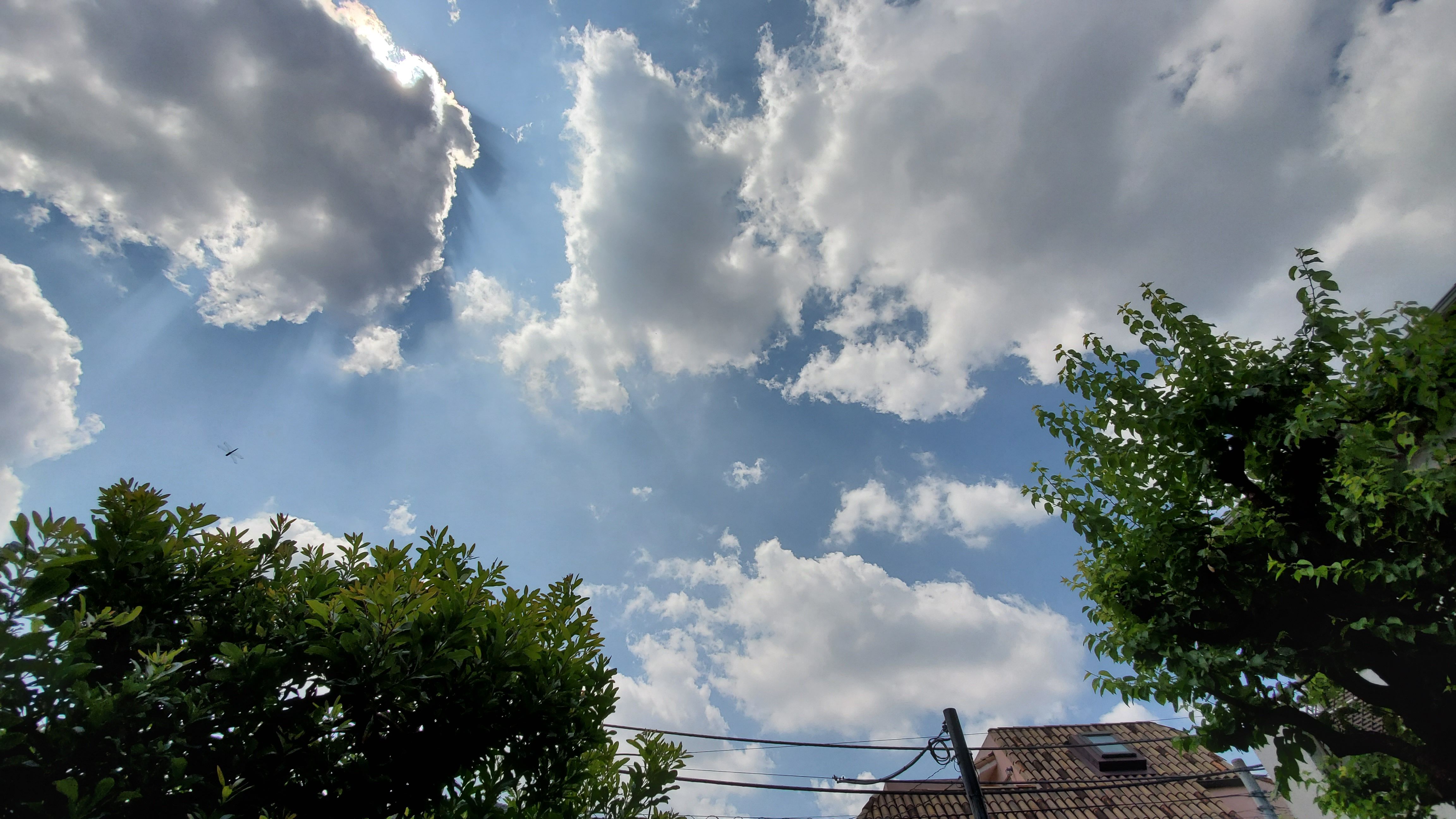 午前中ぐだぐだしていたので昼になってしまった。「そうだ、二葉行ってみよう」と訪問してみたらほぼ満員……一つだけ空いていた小上がりに腰を下ろす。店内では一番クーラーの利く場所だからラーメンを食べるには丁度いい。水を運んでくれたお姉さんが「混んできたら相席お願いします」というが、もうすでに相席だらけの満席状態……「はーい」と答えたけど、なんでこんなに混んでいるのだろうね~ ビール飲みたかったけど、目の前に相席のお客さんが来たら嫌だからさささっと食べて失礼してきた私でありました。 塩系の麺を頼むと、たまに塩を入れ忘れます。忙しいから仕方ないでしょうが、私も塩なしワンタンに遭遇したことがあります。連れ合いは塩抜きタンメンを二度食べたようです。「ちゃんと言わなくちゃだめだよ」と言うのですが、「いいのいいの体にいいから…」だって……いくら野菜の味があっても美味しくはないのに我慢してしまう連れ合いであります。テーブルに塩が置いてあったら助かるんだけど…… 出がけにスマホで空を撮りました。縦横比率は変えておいたし、「なかなかきれいじゃない?」なんて思いましたが、広角で撮ってみるのを忘れてました。 でもって、帰ってから広角でパチ……電線のたわみがいかにも広角レンズです。私のコンパクトデジカメよりも高画質……「カメラが負けるなんてなんでやねん」です。ケーブルでスマホからPCに画像を移動することはまだ出来ていない私……メールに添付して送るなんて面倒なことをしています。もうちょっとだけ良いカメラ買おうかな~ 昨夕、連れ合いがカエルを見つけました。例年冬眠から覚め、春から初夏にかけて庭に登場するカエルですが、この3~4年はまったく見かけませんでした。死んじゃったのかと心配していたのですが、近所に行っていたのでしょう……元気な姿を見せてくれ安心しました。いつも最初に遭遇するのは連れ合い……自ら「カエルとは友達だからね~」と言います。どちらも居候の身だと思っているのでしょうが、水巻や草むしりとカエルに近い場所でたくさん働いてくれています。ご苦労様ね~ さっき庭を探しましたがカエルの隠れ場所は見つかりませんでした。また見かけたら教えてね~