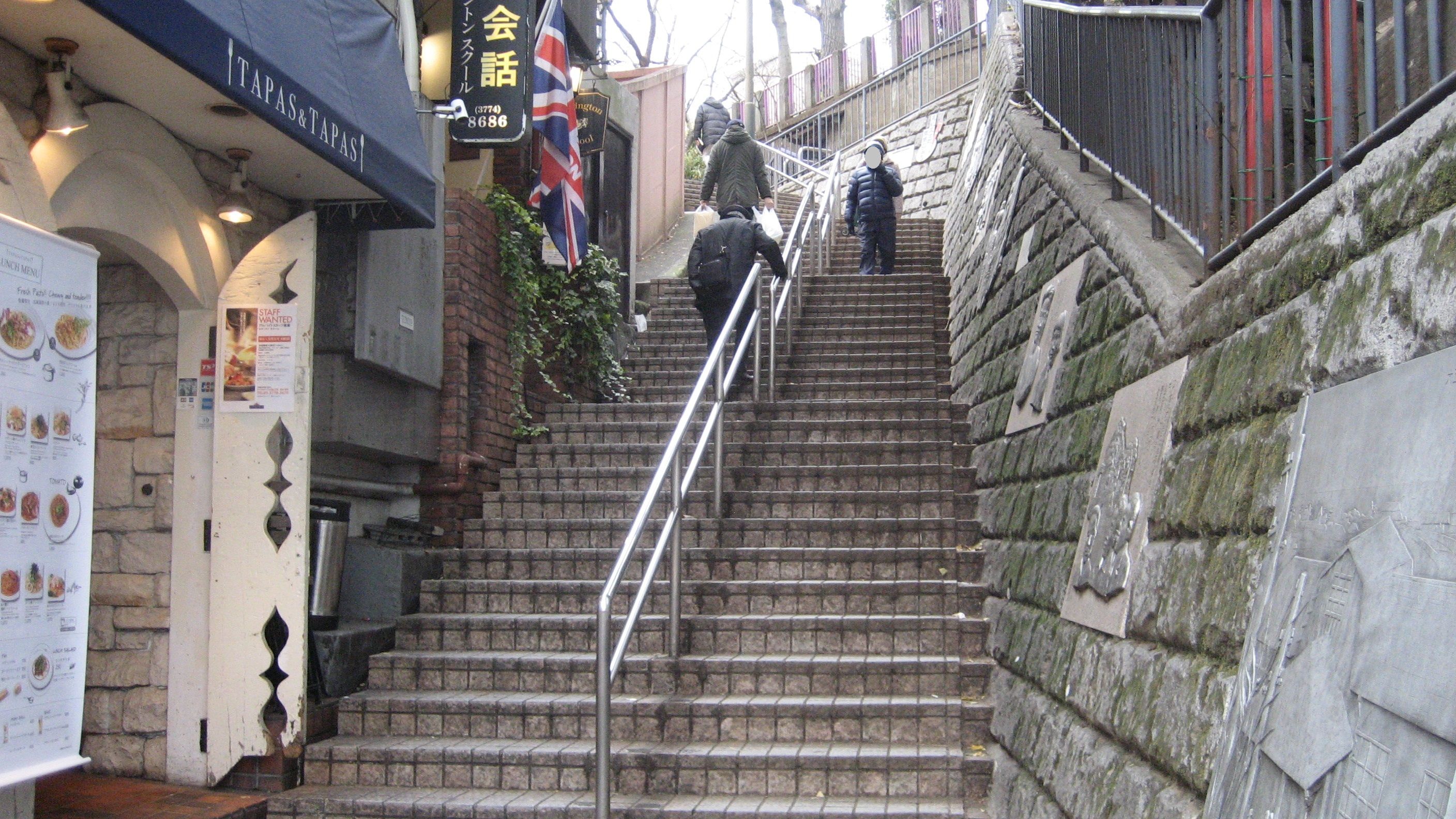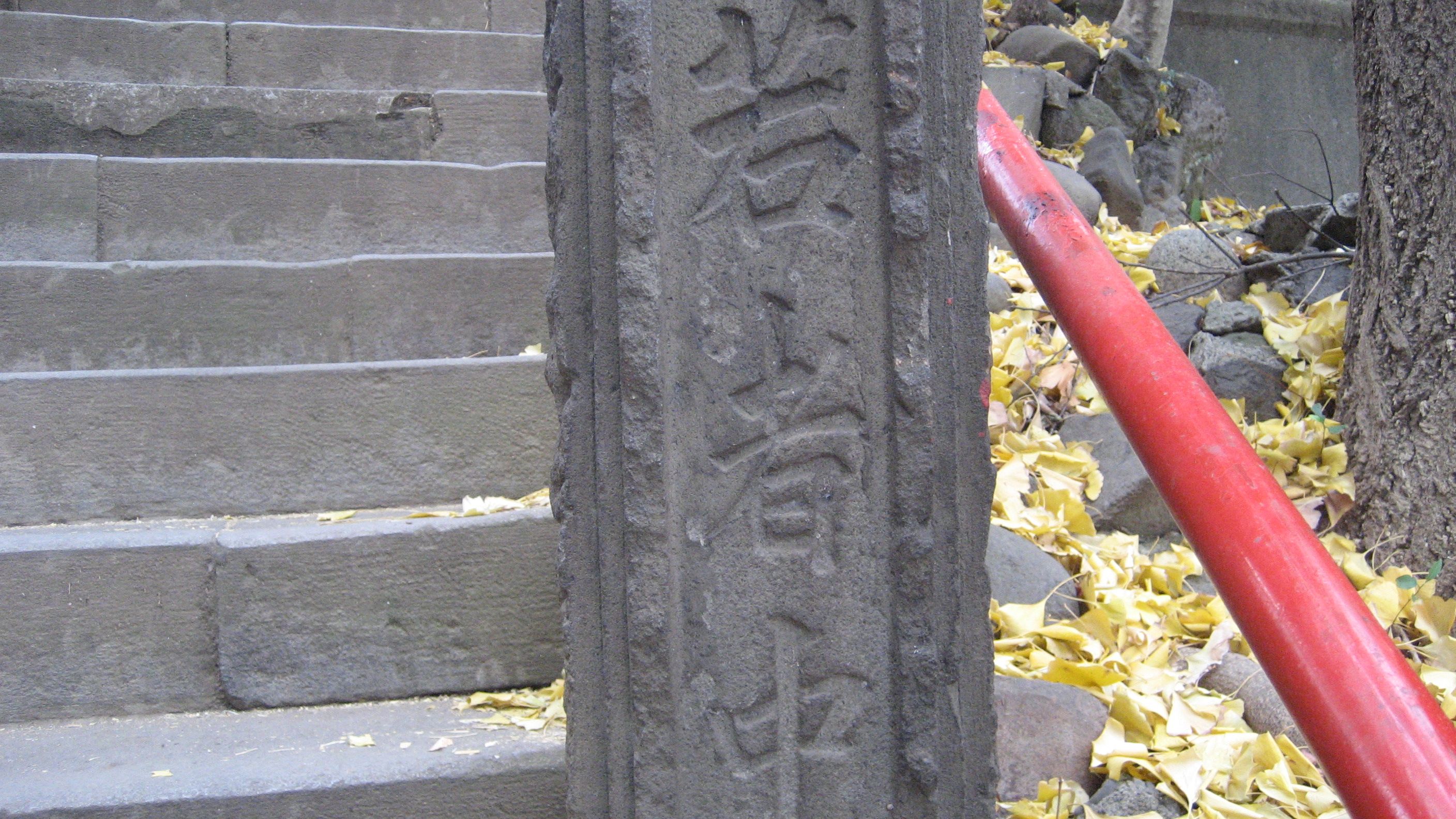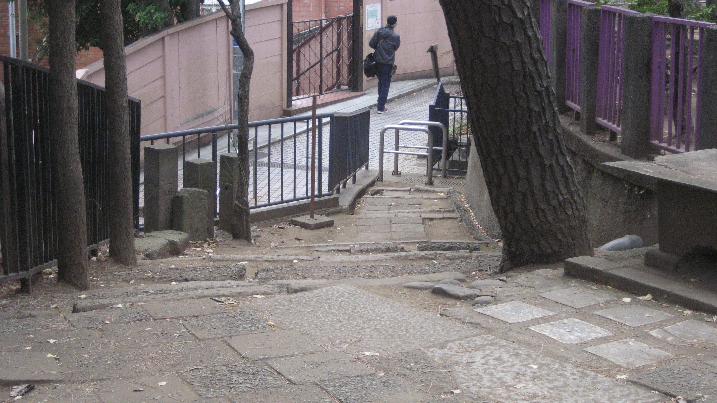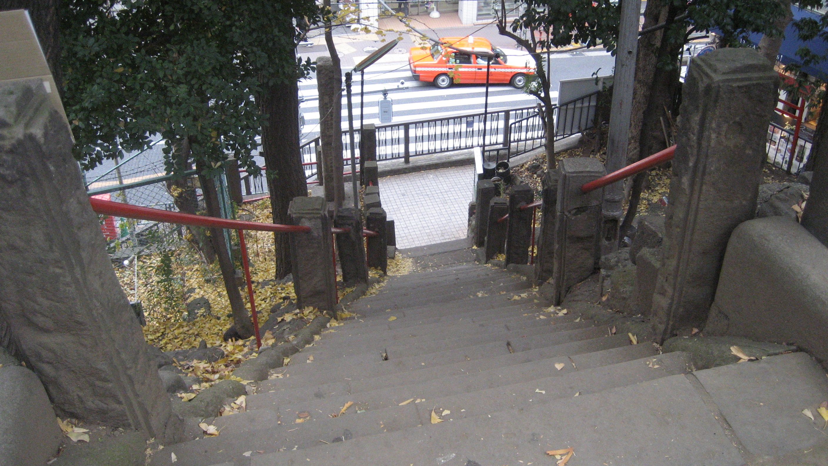 参道の上まで来ましたが「往き(行きは)はよいよい、帰りは怖い」……踏み外したらあの世行きです。「僕はまだ死ねません」ということで見回したら……