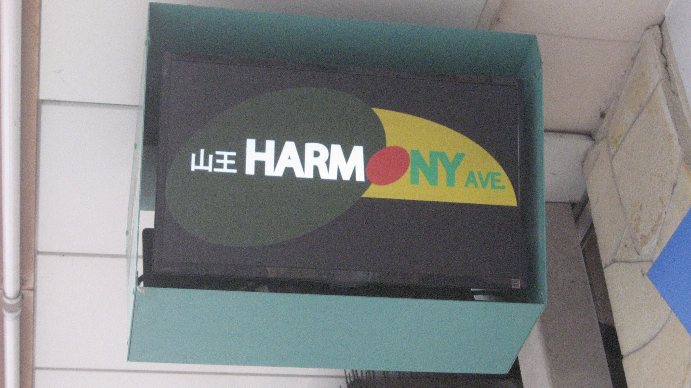 ​ 私が歩いた商店街は、こんな名前だって……まず緑色の「NY AVE 」​を「ニューヨーク アヴェニュー」と認識した私。「HARM」って「害」だけど、と戸惑う私。小豆色の丸印を「O」と認識できるまで時間を要したのですが「デザインが悪い」と、人のせいにする私でありました。正解は「山王ハーモニー アヴェニュー」なのでしょう。
