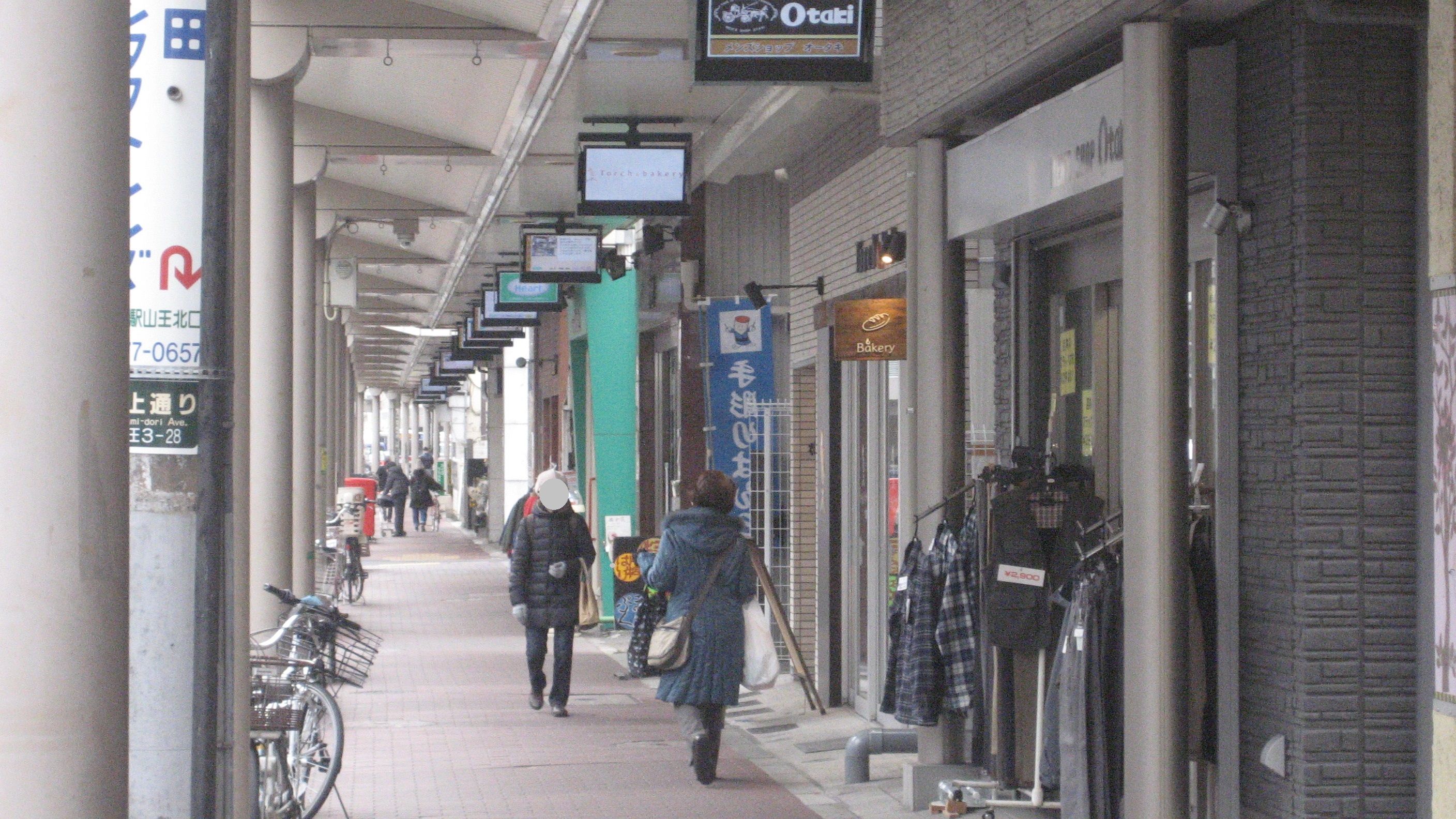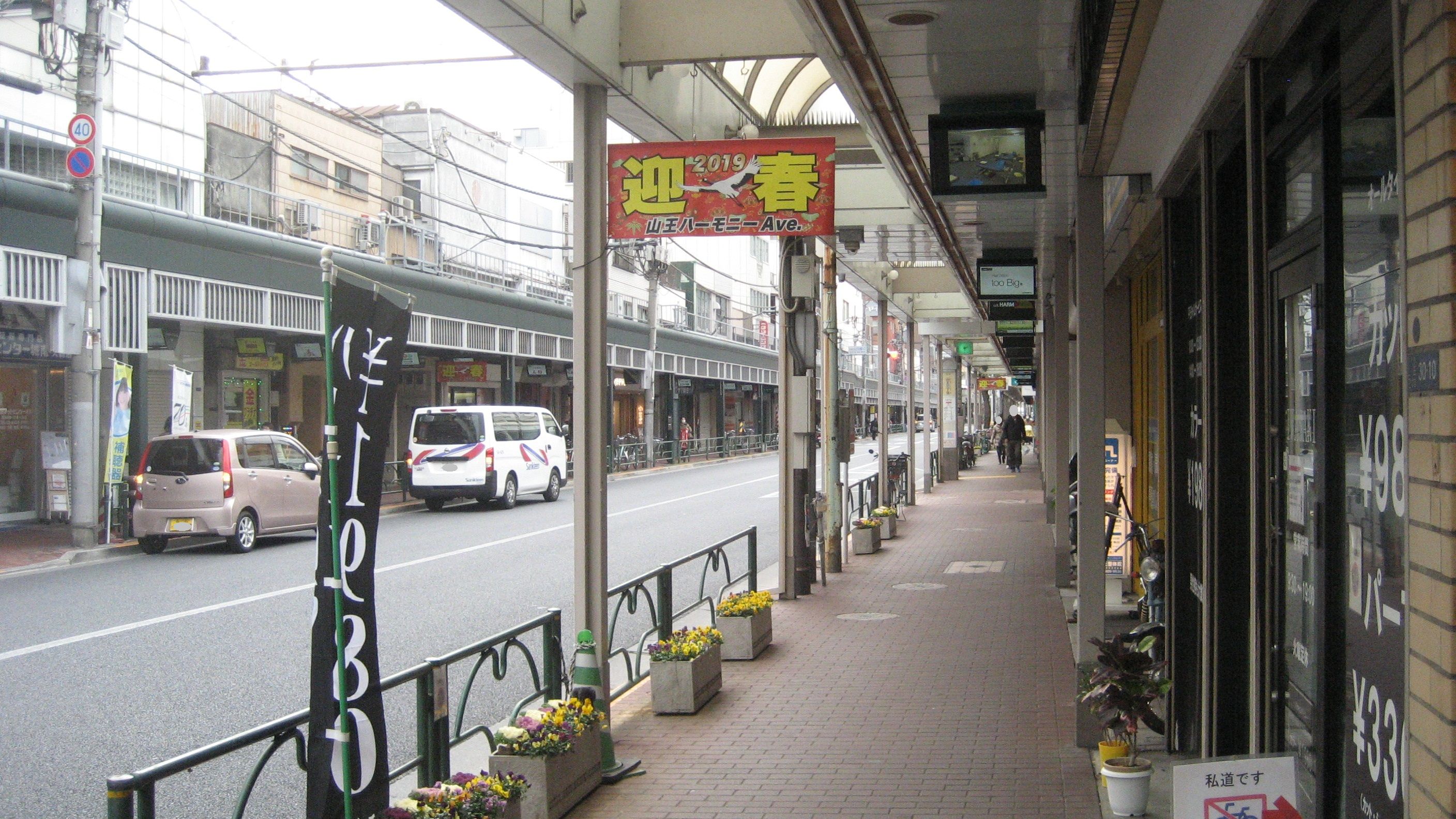 池上通りに沿って、屋根の付いた商店街が両側に続いて行きます。反対側(左側)は「ウイロード山王」と言うんだって…