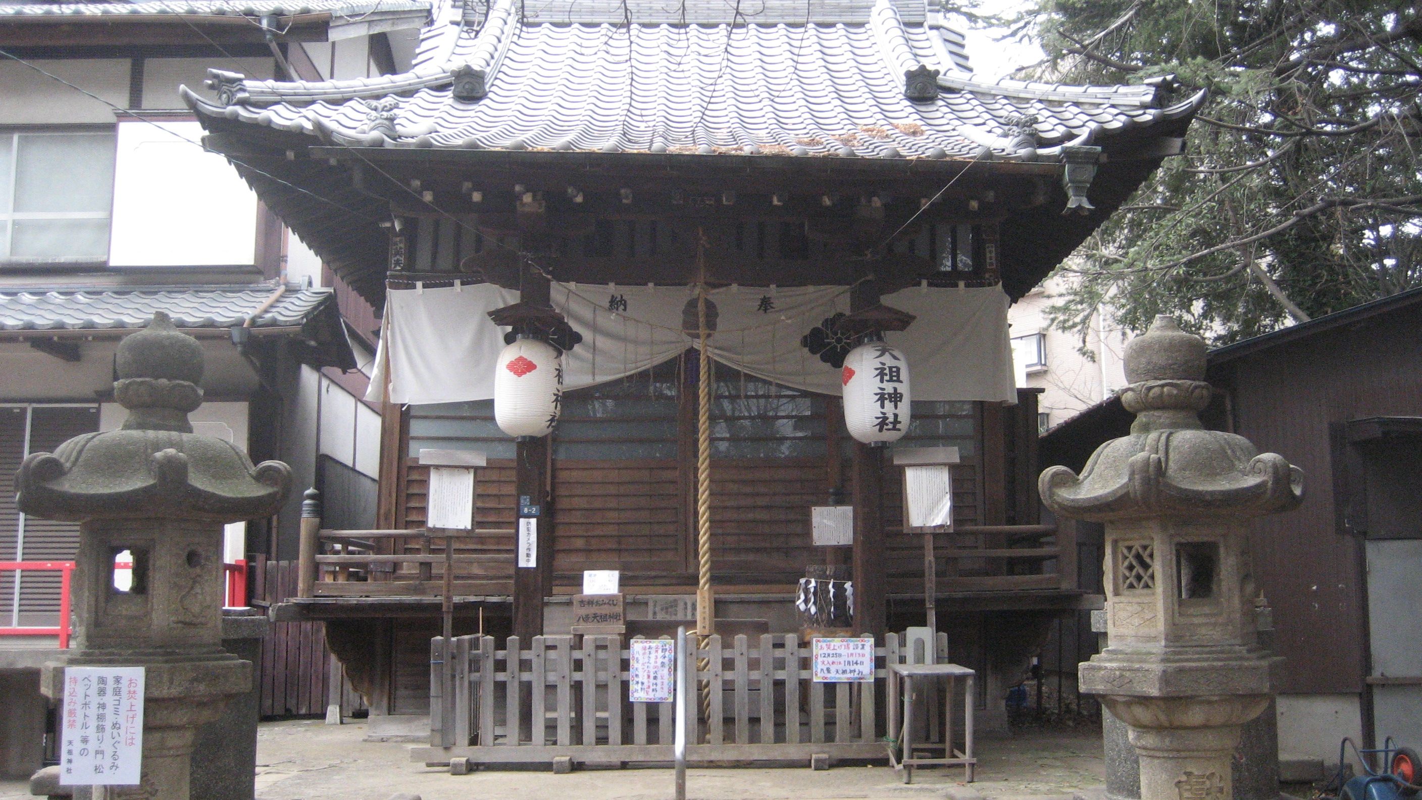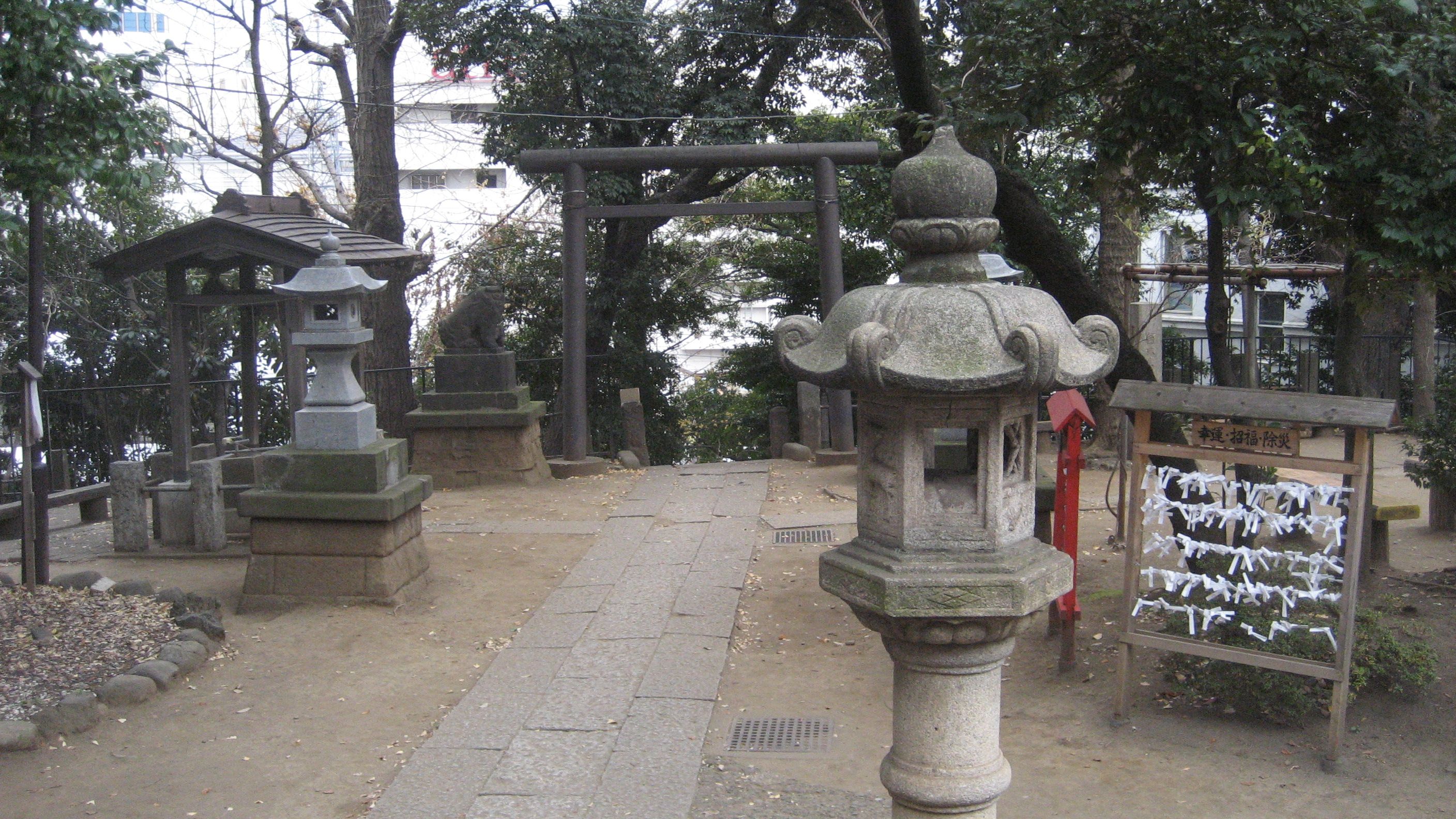 ​  お稲荷様 ……すぐ左にありました。古そうです。​灰皿の後ろにあるのは「八景碑」だそうです。私が歩いて来た山王口あたりからの池上通りを「八景坂」と言うそうで、昔昔は大森海岸はもちろんのこと遠くは房総まで一望できたとのことです。