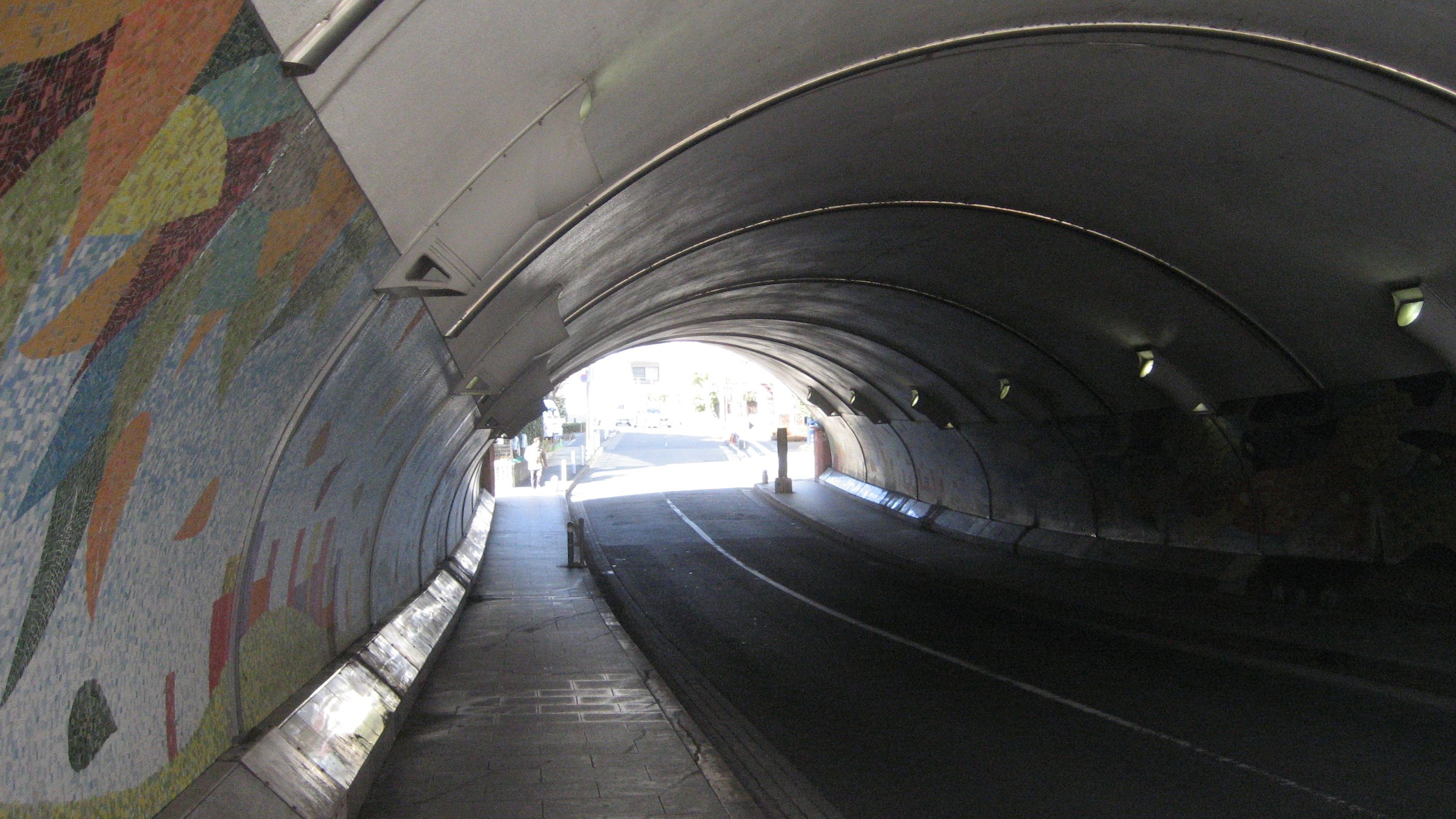 もろにコンクリートではなく、半円形の鋼材が使われているのでしょう……気持ちのいいトンネルでした。
