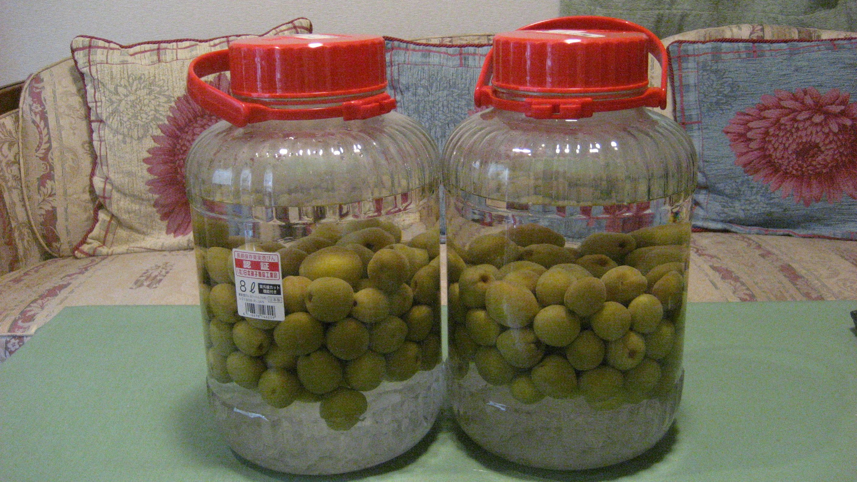 梅の掃除をして、さっそく梅酒を作っていました。