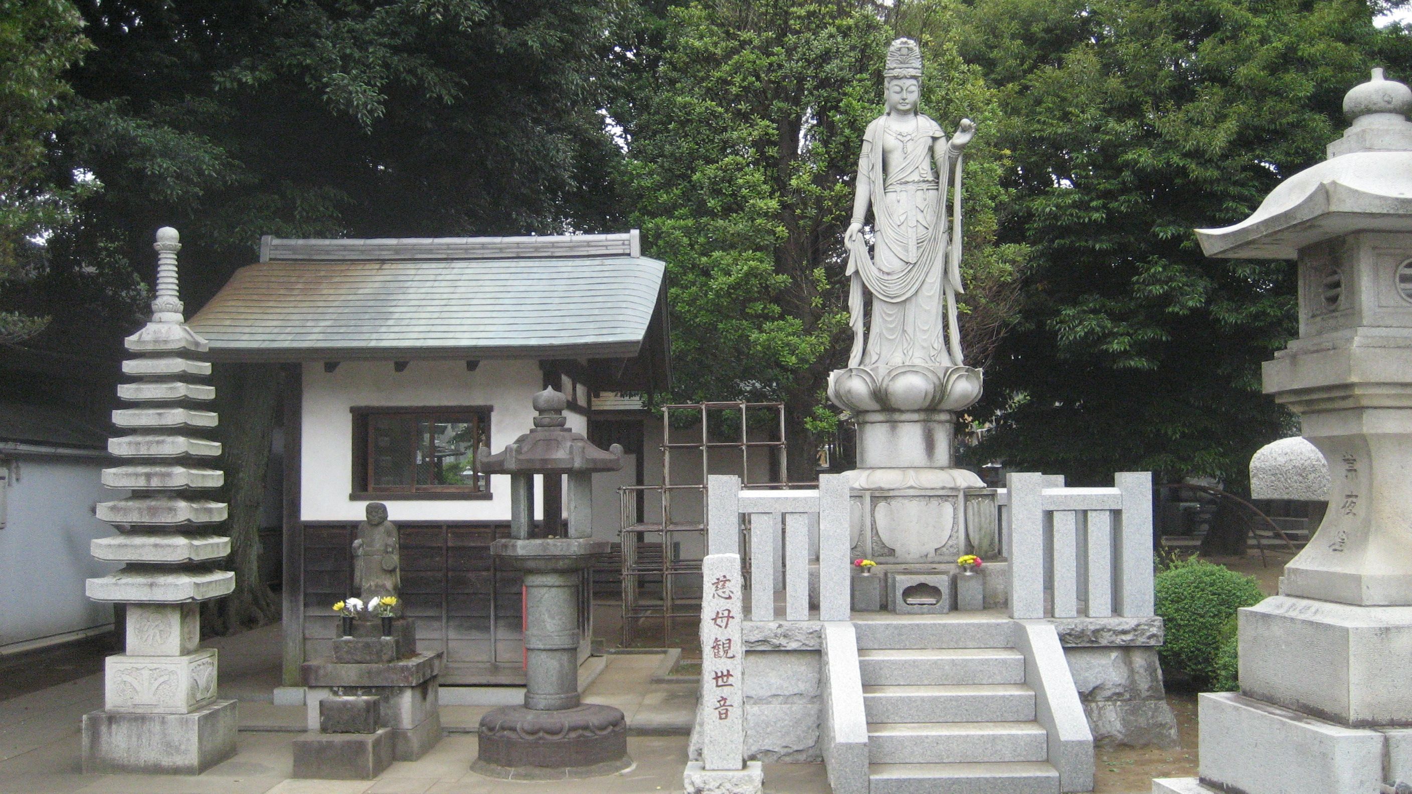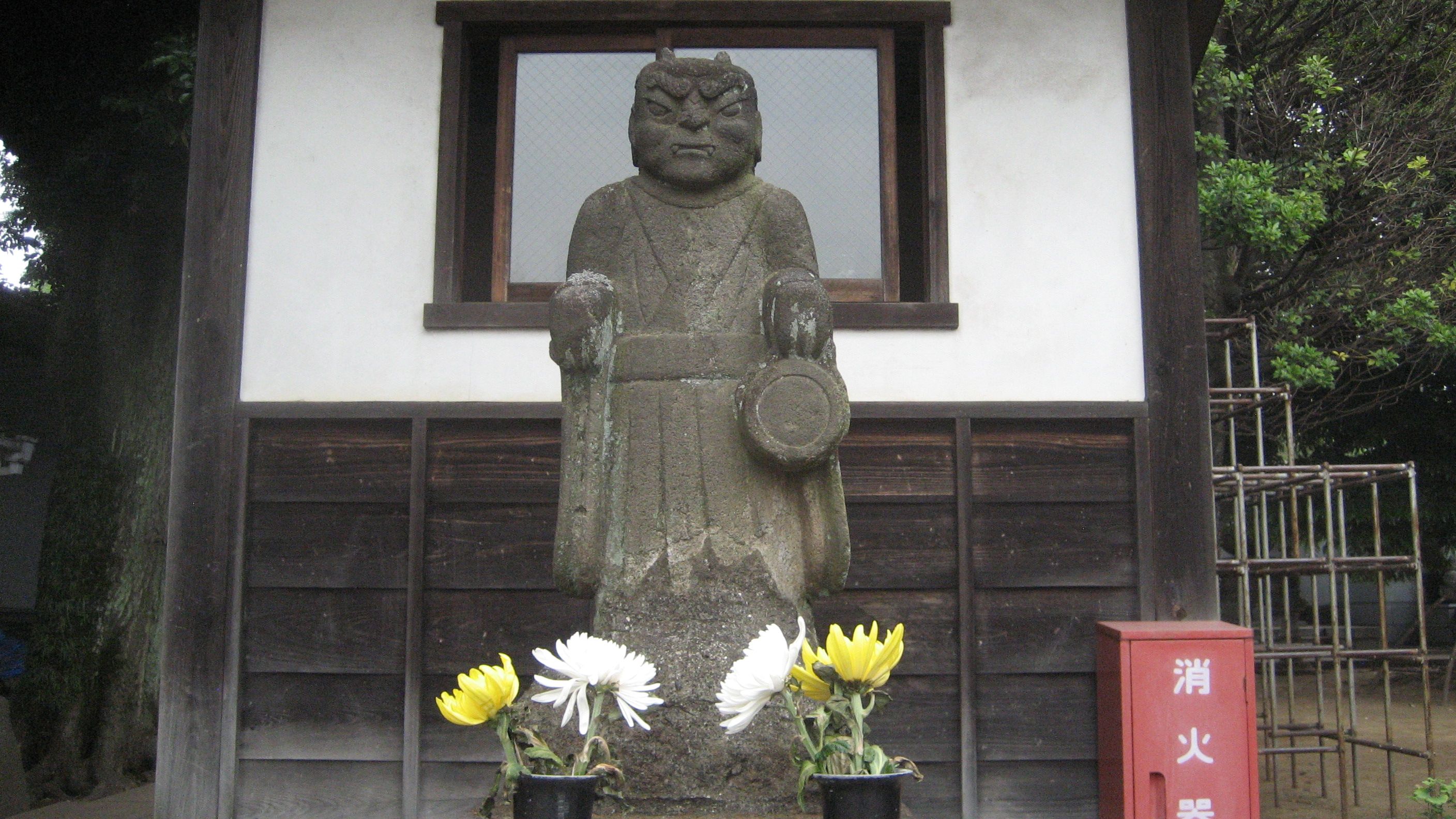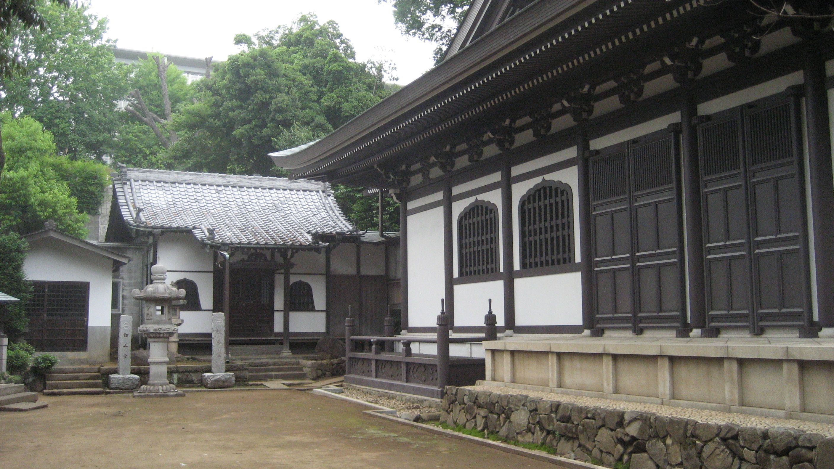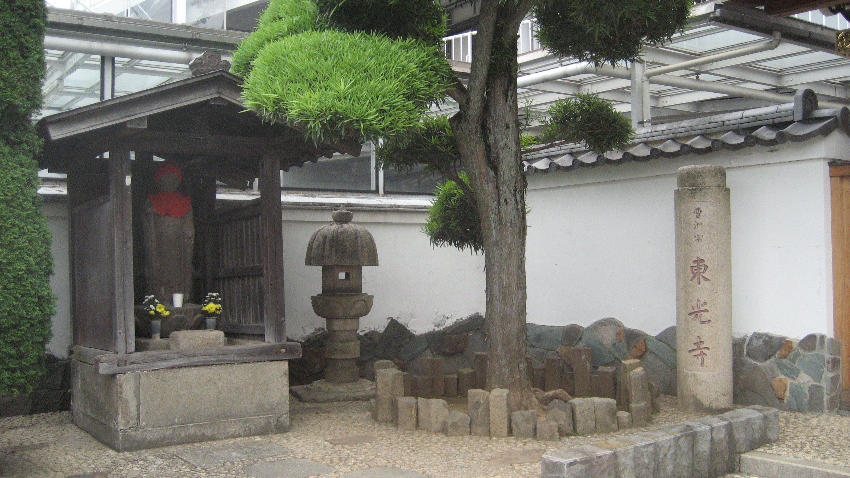 ​  東光寺本堂 ……​『貞治4年(1365年)、当時の世田谷城主吉良治家(きらはるいえ)が、10歳で早世した子息の祖朝(ちかもと)の菩提を弔うために建てたのが当寺です。吉良氏は中世にかけて世田谷・目黒地域に勢力を誇った一族で、吉良氏の庇護のもと、東光寺は碑文谷の法華寺(現、円融寺)とともに栄えました。創建当初は「東岡寺」と称し臨済宗でしたが、天正19年(1591年)頃に現在と同じ「東光寺」と改め、さらに江戸時代の初めには曹洞宗へと変わりました。(目黒区教委)』