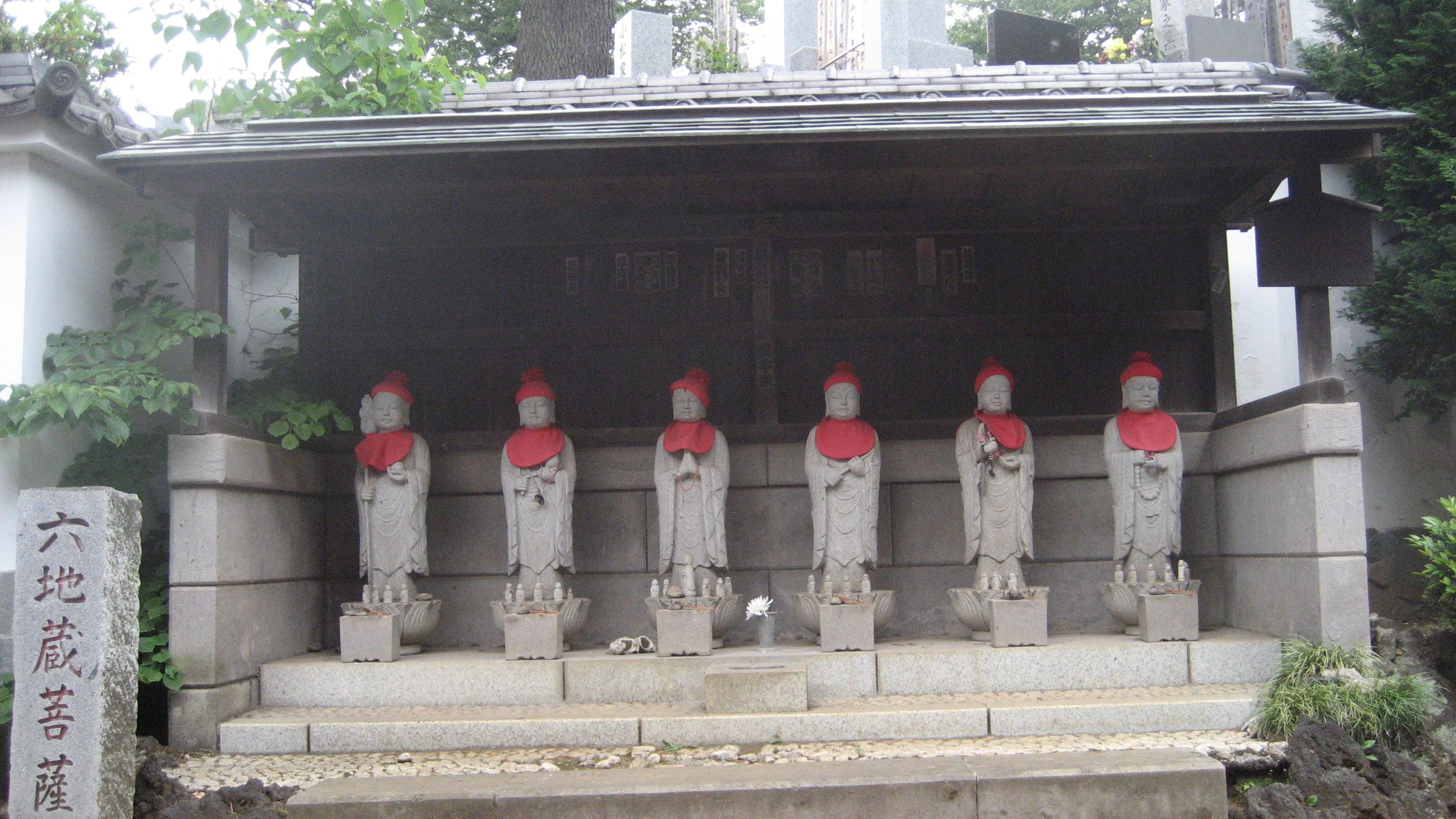 地獄道を救う檀陀(だんだ)、畜生道を救う宝印、餓鬼道を救う宝珠、修羅道を救う持地、人道を救う徐蓋障(じょがいしょう)、天道を救う日光……あるいは、延命、宝手、宝処、持地、宝印手、堅固意の六地蔵とする説もあるそうな…