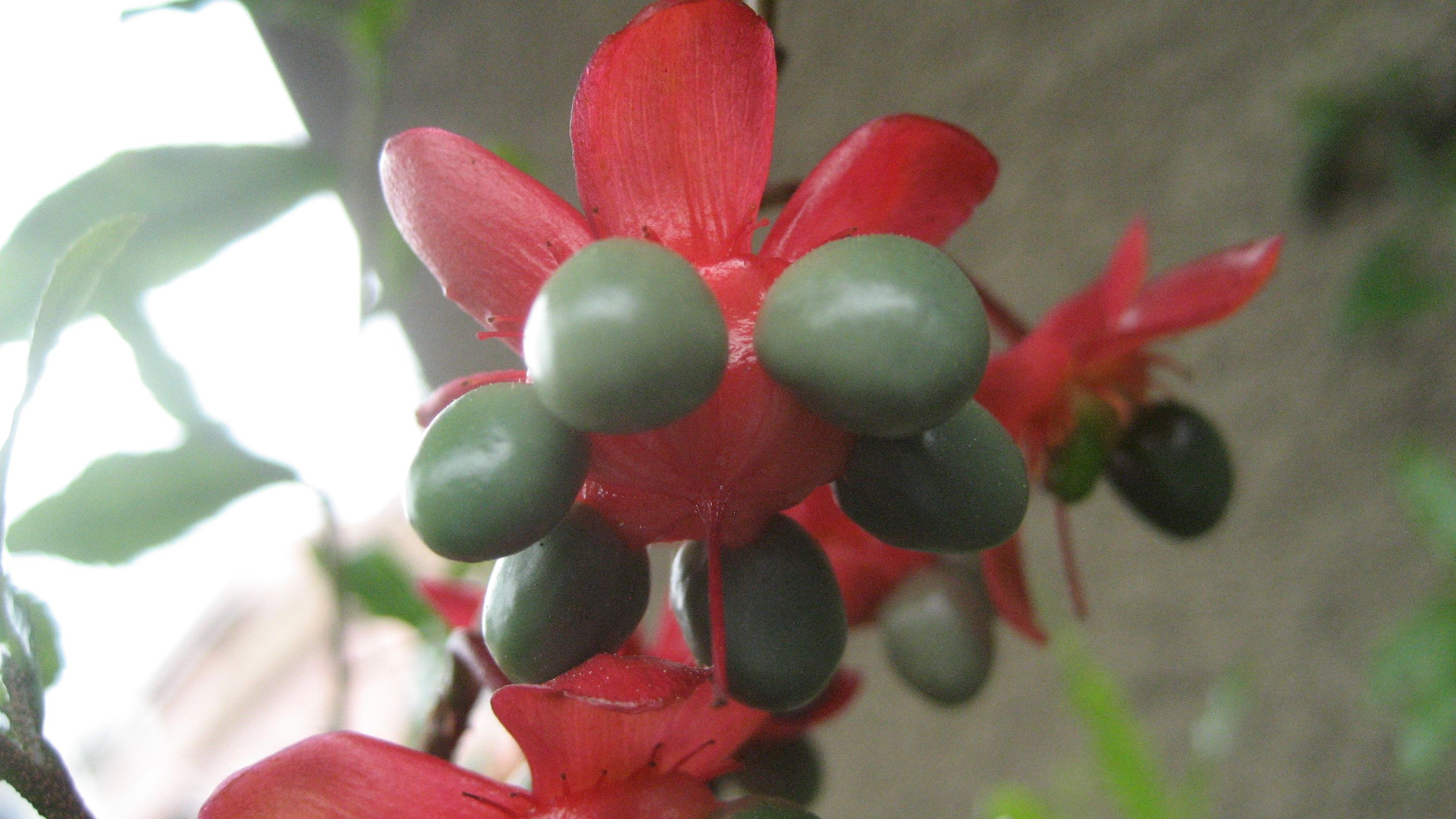 赤いのは花じゃなくて「萼(がく)」らしい……