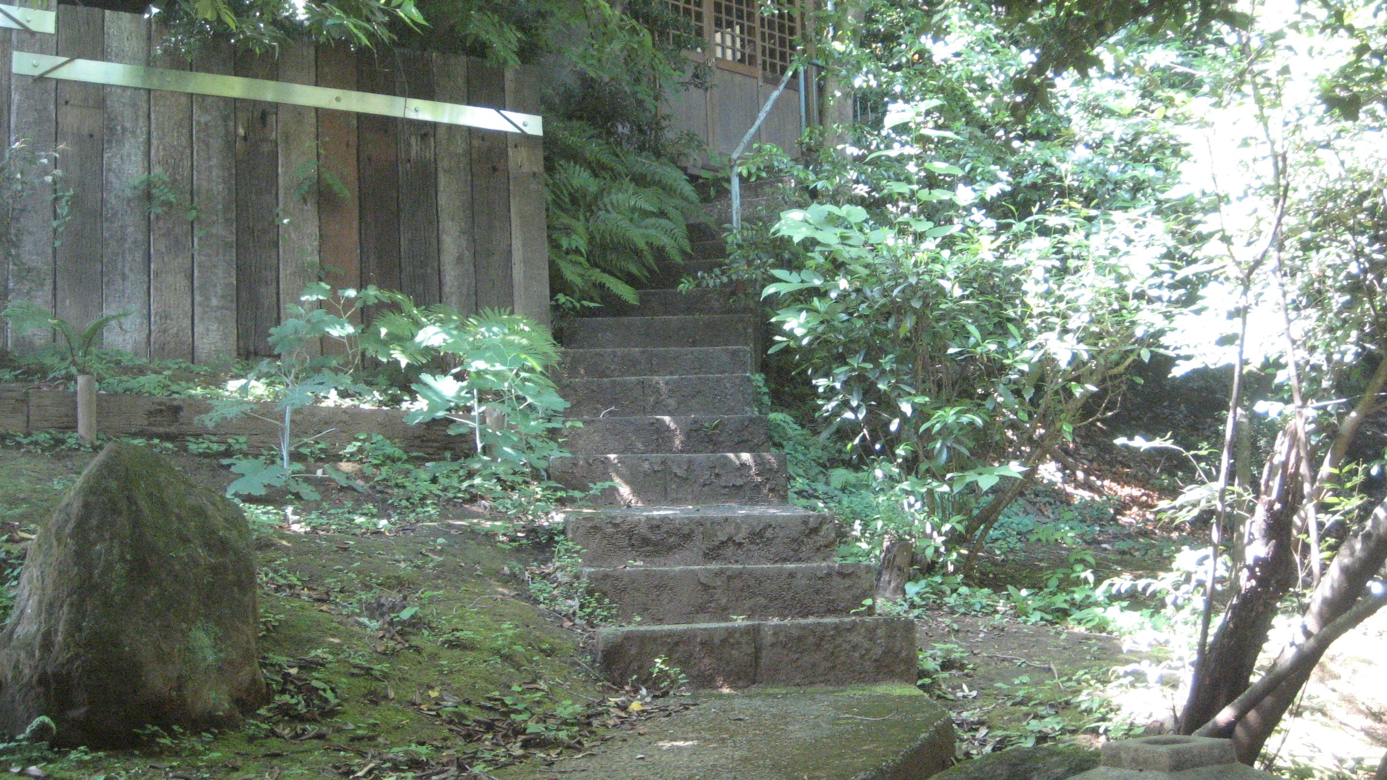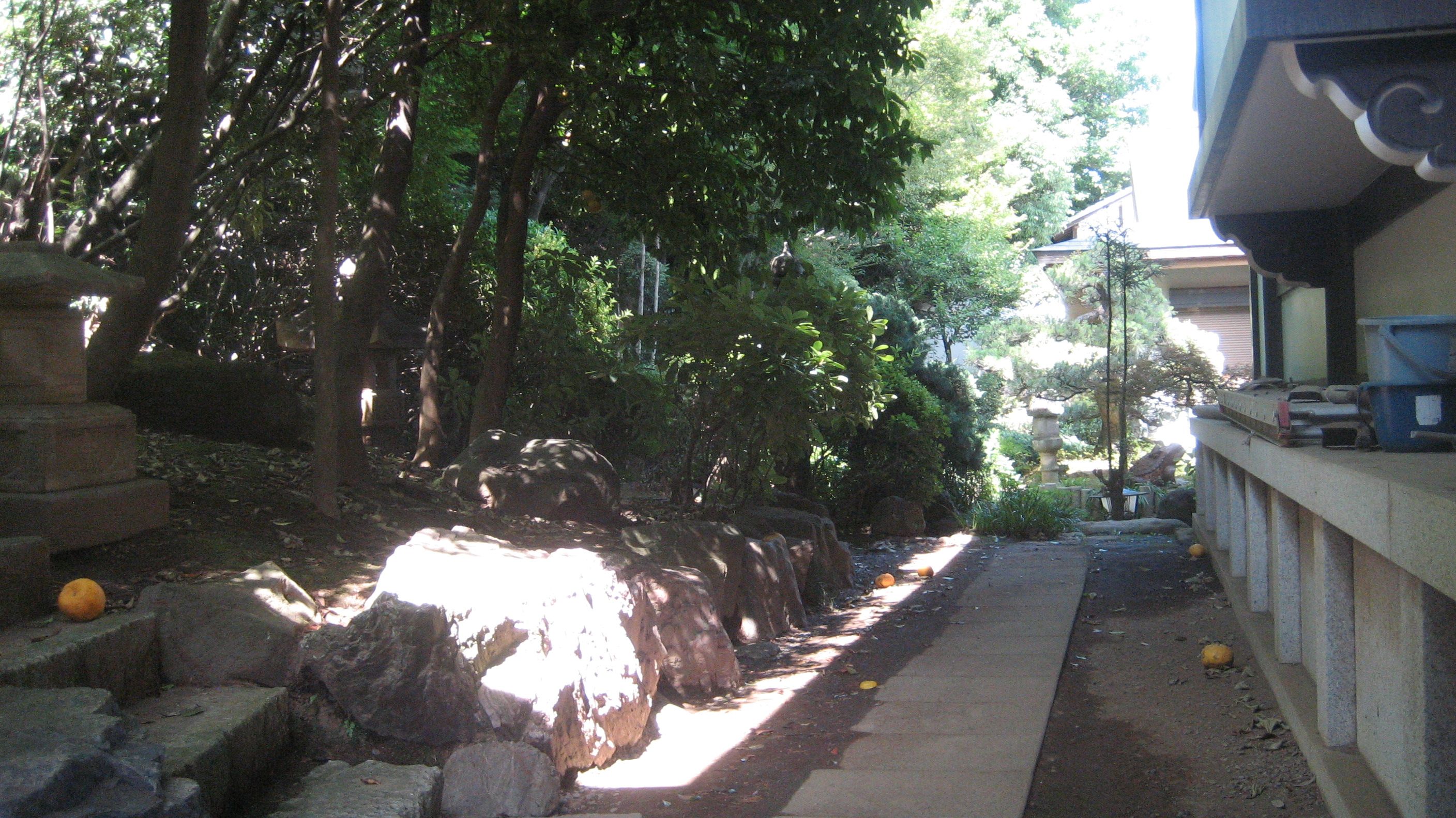 渡り廊下をくぐると本堂裏……進んでいくと…