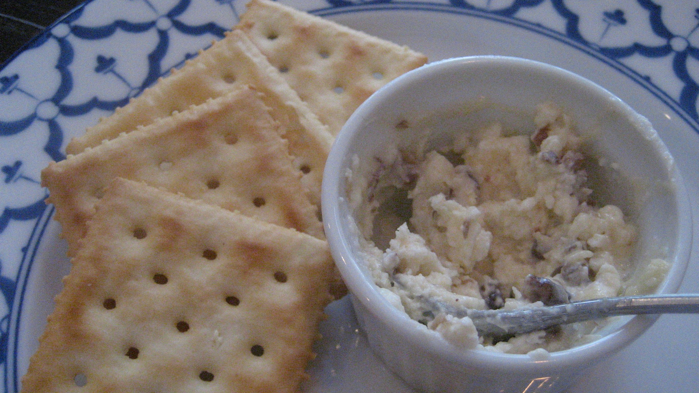 レーズンバター……小岩井あたりのが出てくると思ったらこんなのが登場……無塩バターと生クリームを混ぜ、 ラムに漬けたレーズンを入れる。バターが無塩なので、塩は加減して加える……おもしろい主のこだわりに感心した私です。そもそもドイツ料理などまったく知らないのですが、外国ではみなさんこういうレーズンバターを食べているのかしら?