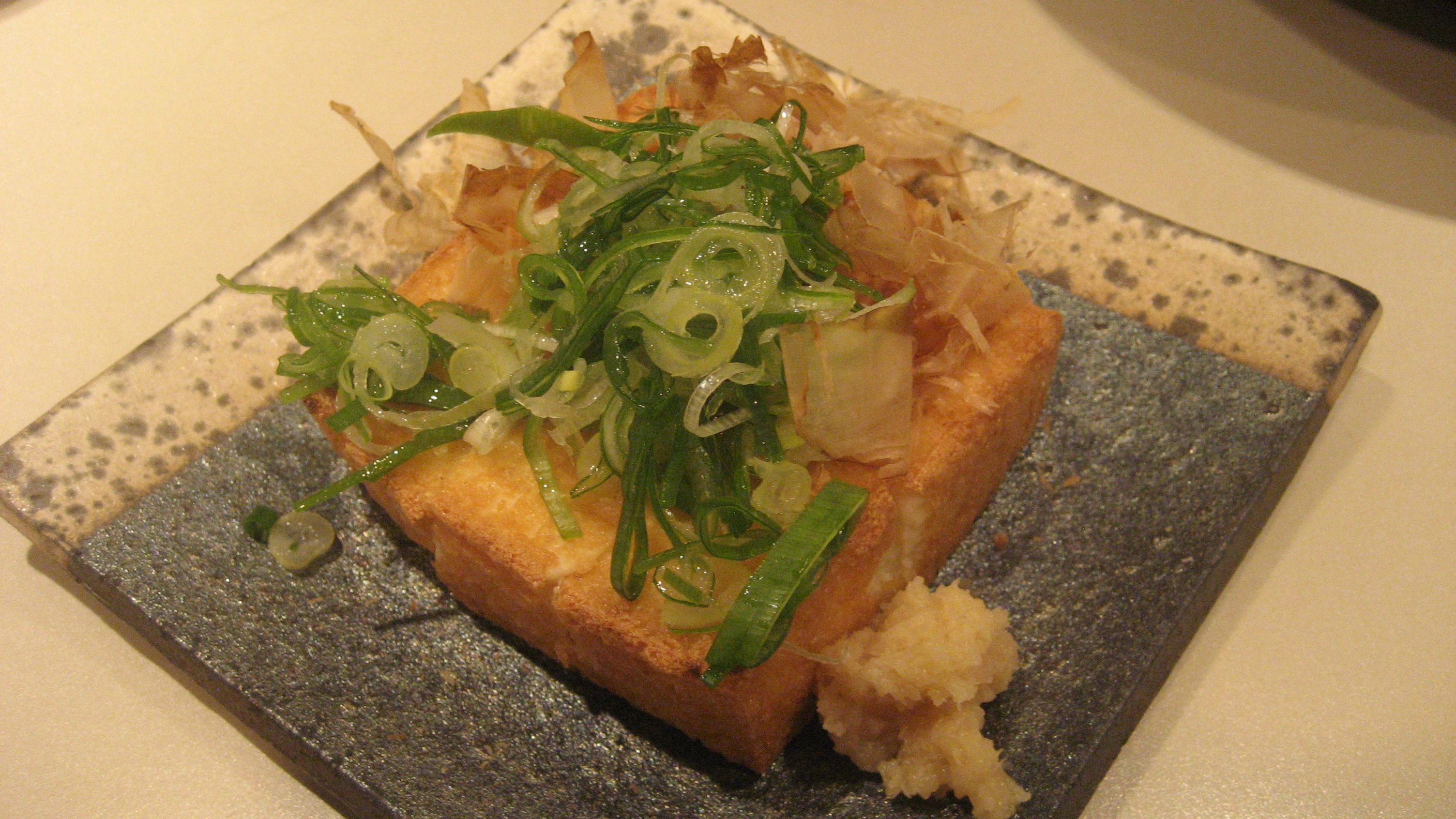 ​  厚揚げ ……​モーニングだけで昼食抜き……コピットお腹がすいていたので食べました。本当は「京油揚げ焼き」をお願いしたのですが、「すみません、油揚げ切らしてます」とのことでちょっとがっかりの私。でも、大きくもなく美味しかったから満足。