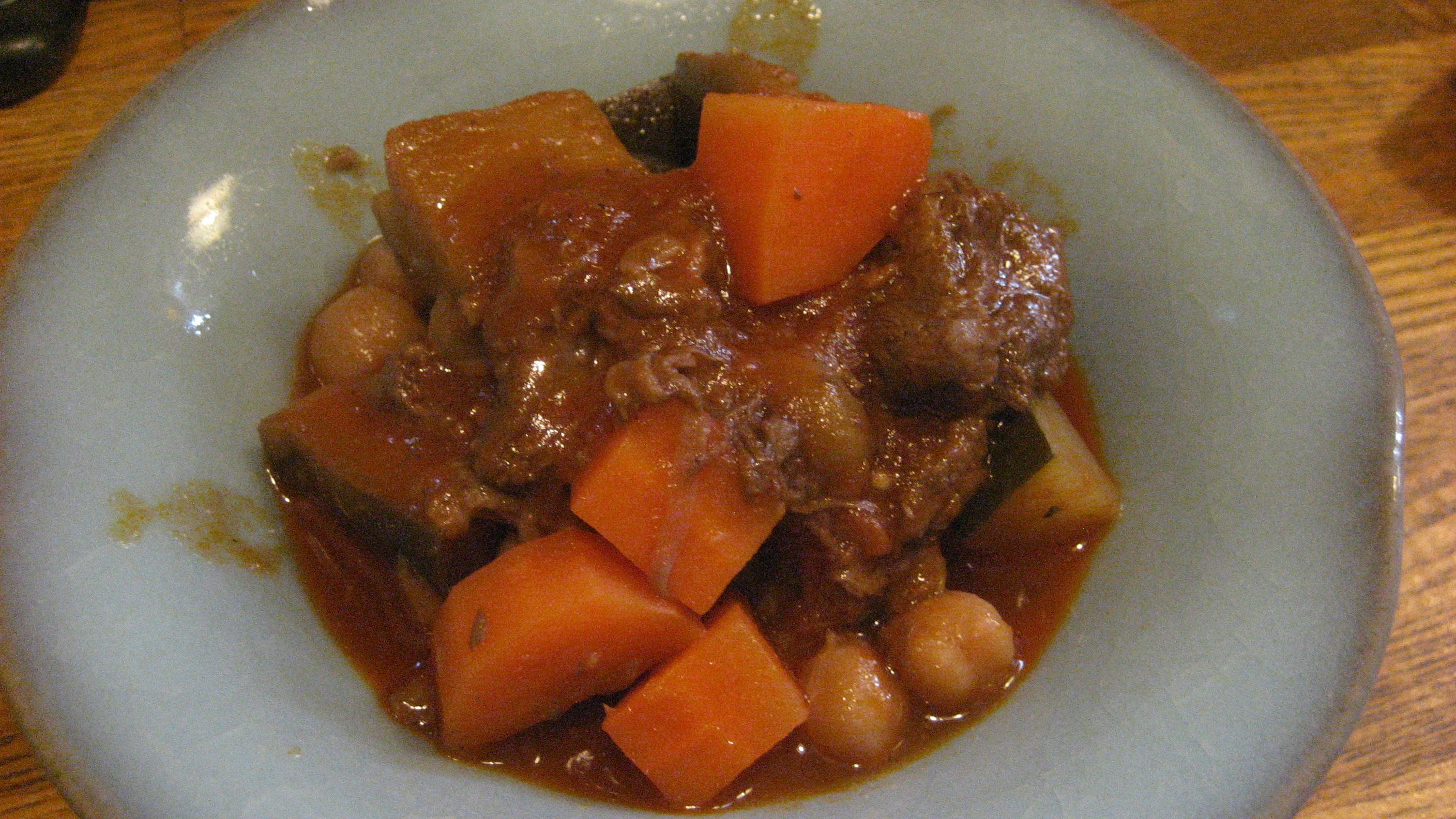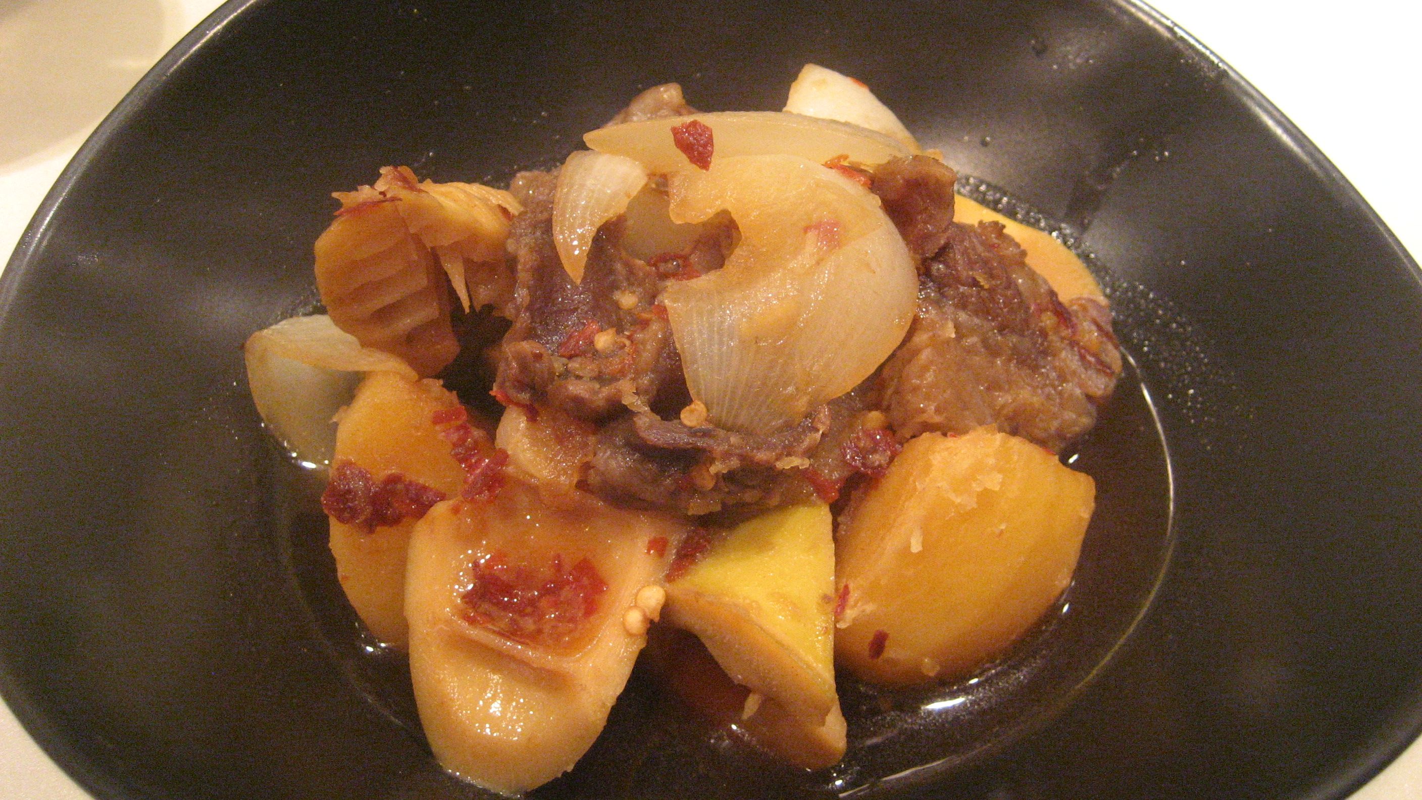 ​ 韓国風牛すじ煮 ……​筍、ジャガイモ、玉葱が入っていました。それほど辛くはありません。米ぬかであく抜きされたそうですが、えぐみがなくて美味しかったです。