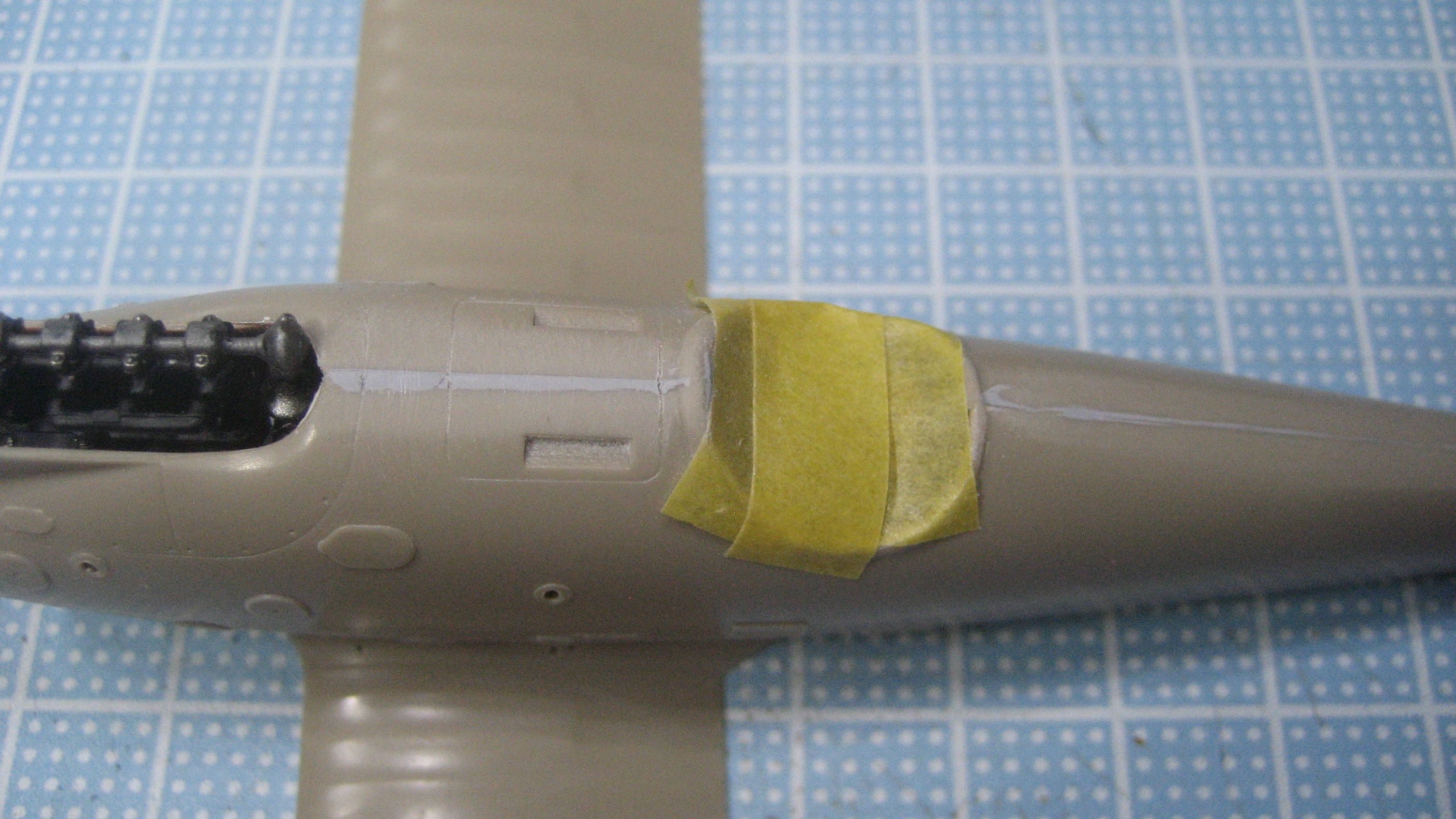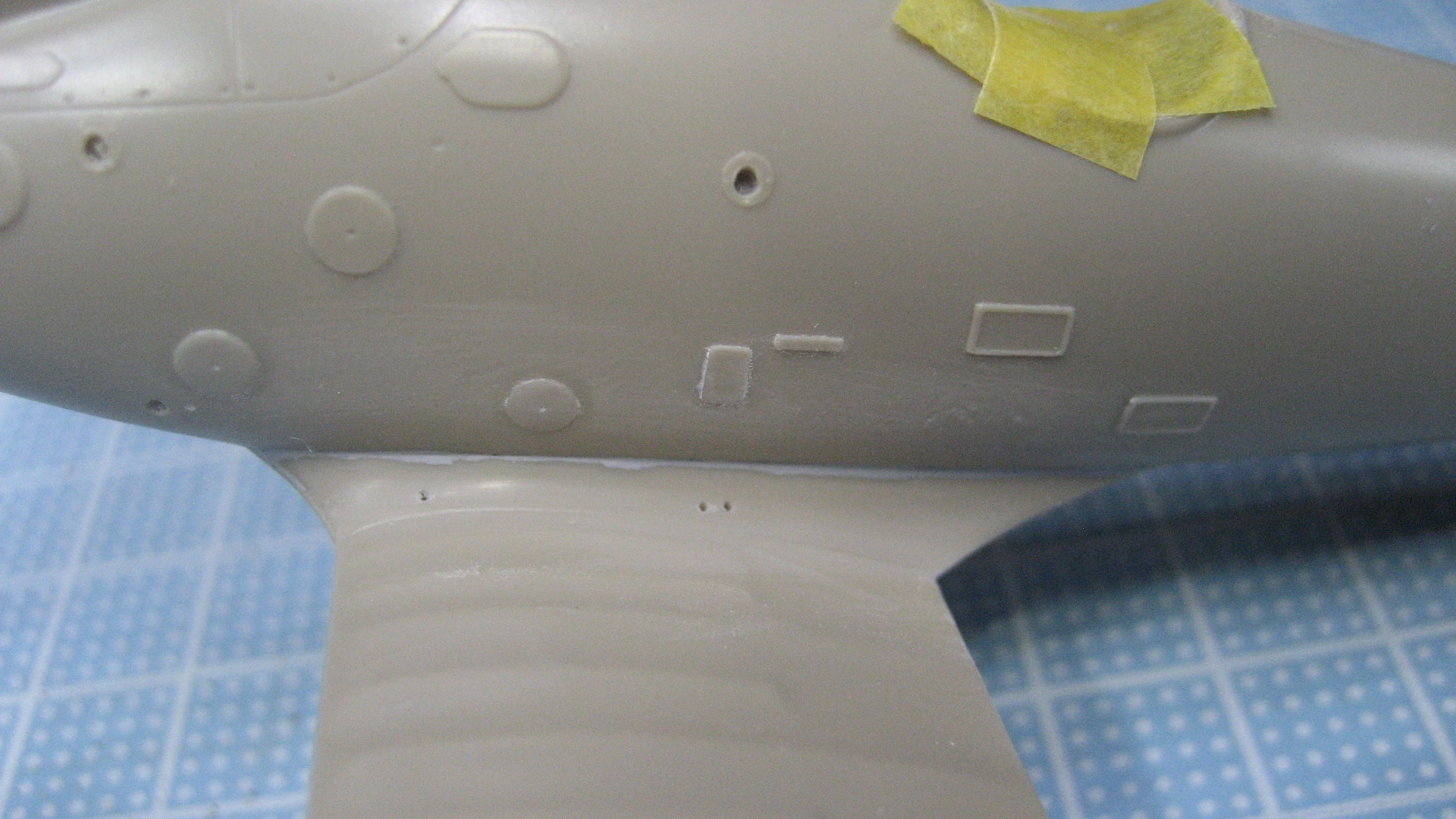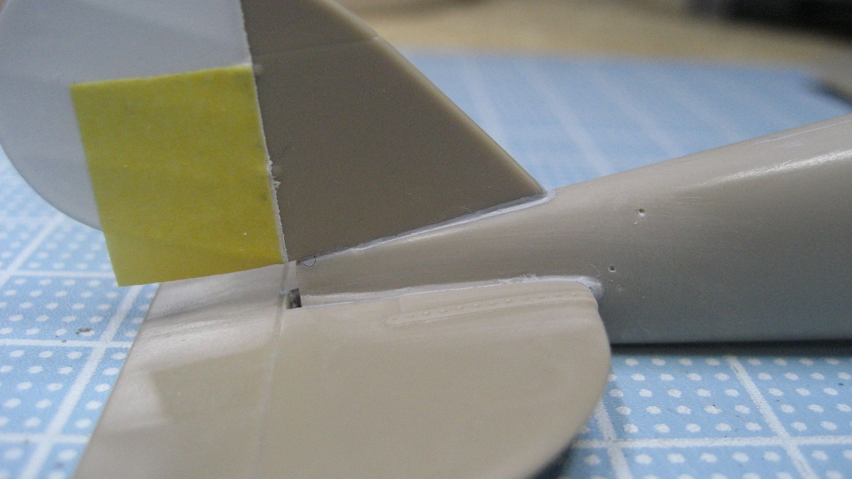 垂直尾翼の付け根もわずかに隙間があったので埋めました……だけどサンドペーパー当てるのは辛い個所……ほったらかしでも良いんでしょうが…