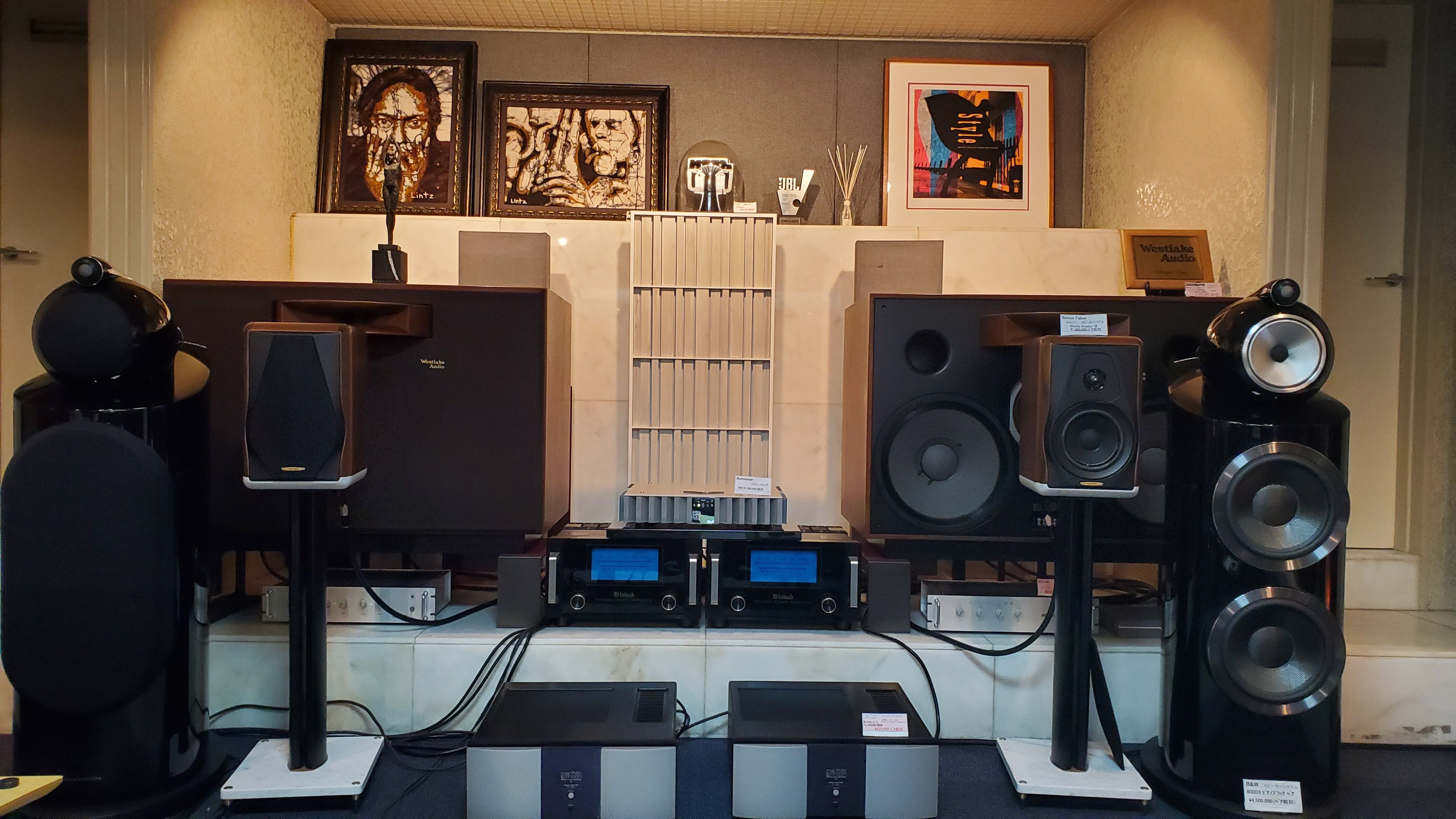 一番奥に鎮座する大箱のスピーカー「Westlake Audio・BBSM-15F」は初めて目にしました。「BBSM」の[BB]とはBass&Bassの意味通り、低音再生の38cmウーファーを2個搭載。中域は25cmコーン型、高域は1インチドライバーにウッドホーンが付いています。能力を引き出すにはそうとう広い部屋が必要でしょう。値段ですか? ペアで950万円(税別)ですって……モノラルパワーアンプ2台とプリアンプを揃えたら1500万円になっちゃいます。宝くじ当たっても置き場所ないです。