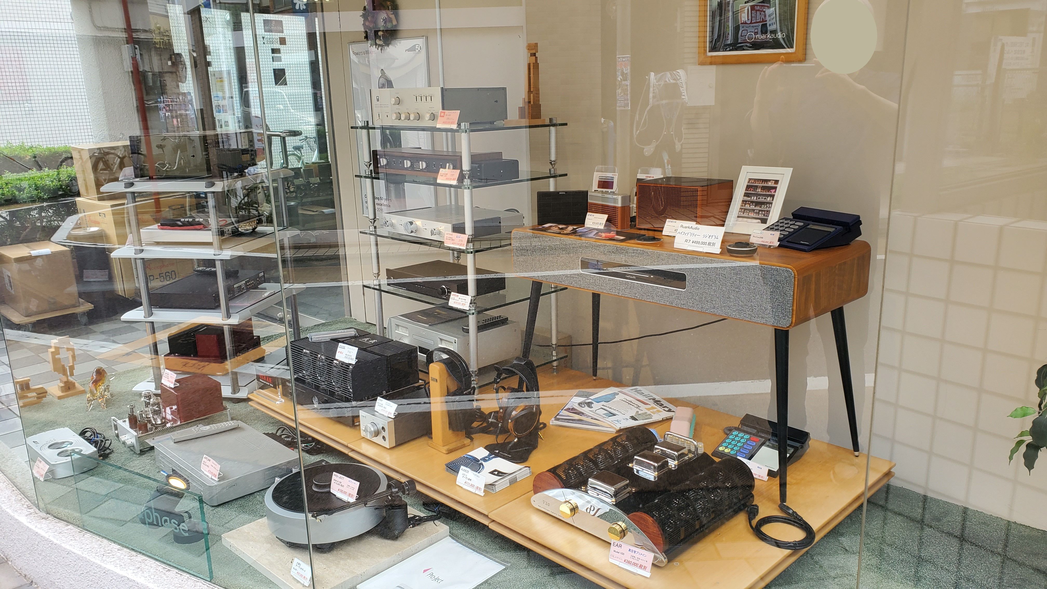 時代と共に飾られる品々こそ変わるものの、私の知る限り50年前と変わらぬショーウインドウ……昔は山水、テクニクス、ビクター、オンキョー、トリオ、パイオニア、ラックス、ソニー、アカイetc国産メーカーが目立っていましたっけ。ナカミチのテープデッキは高かった~