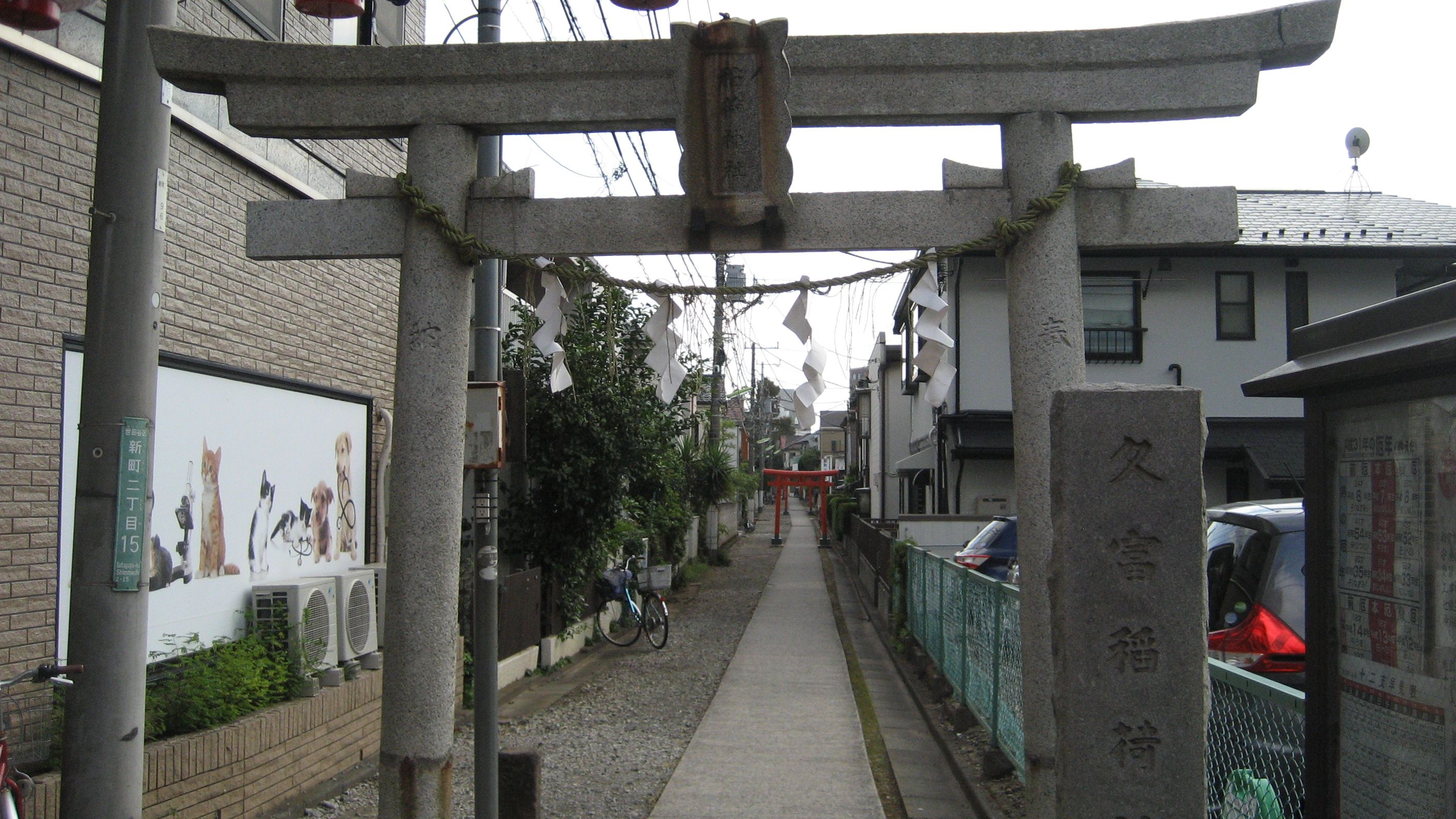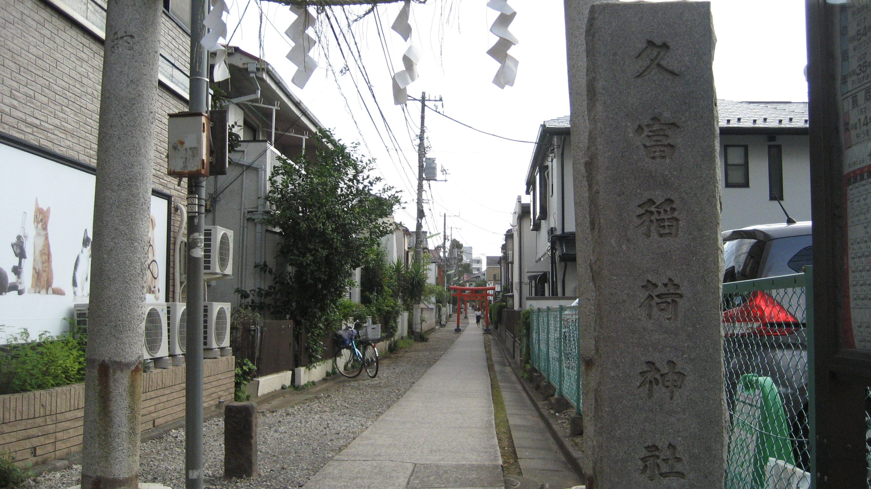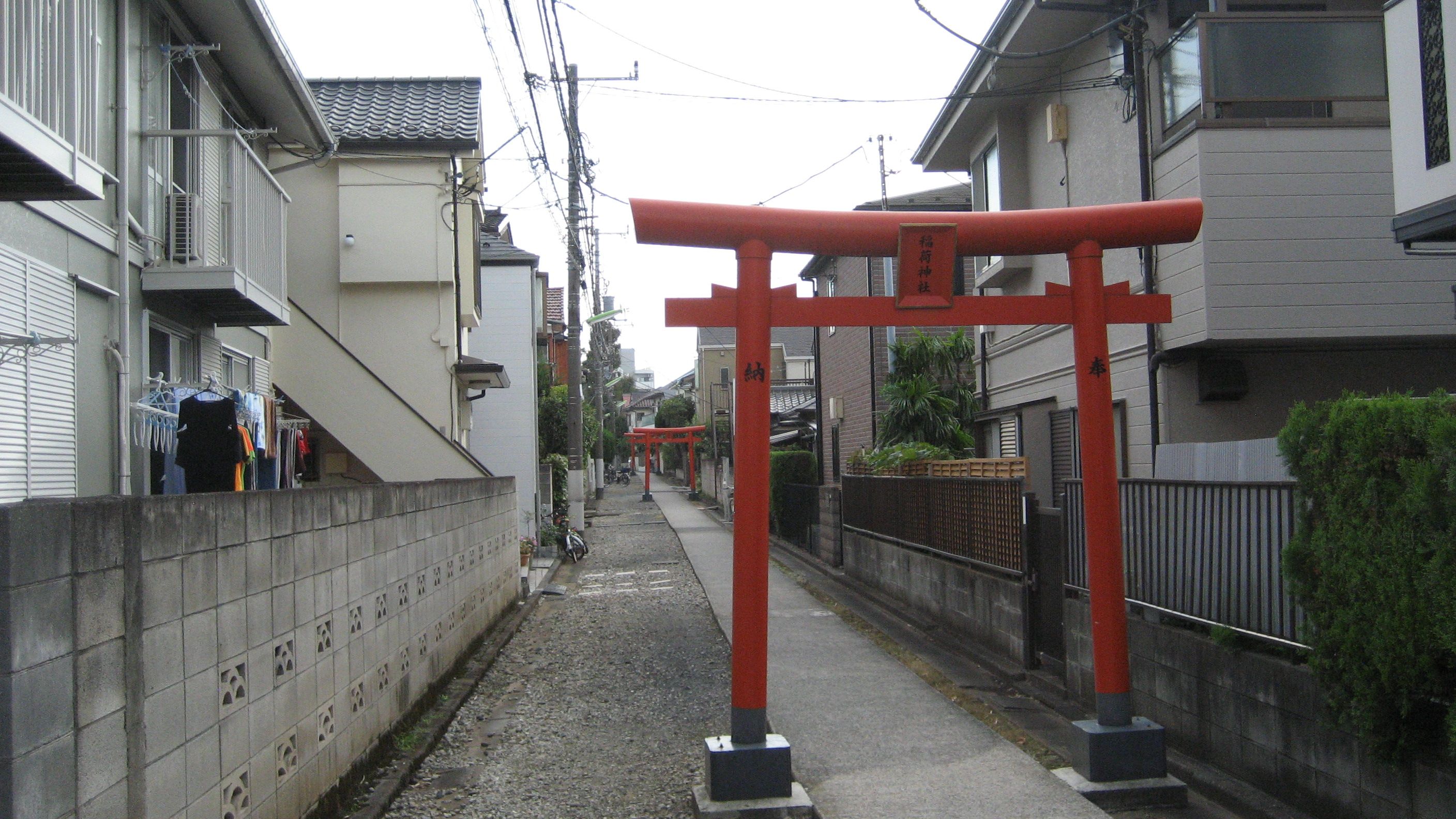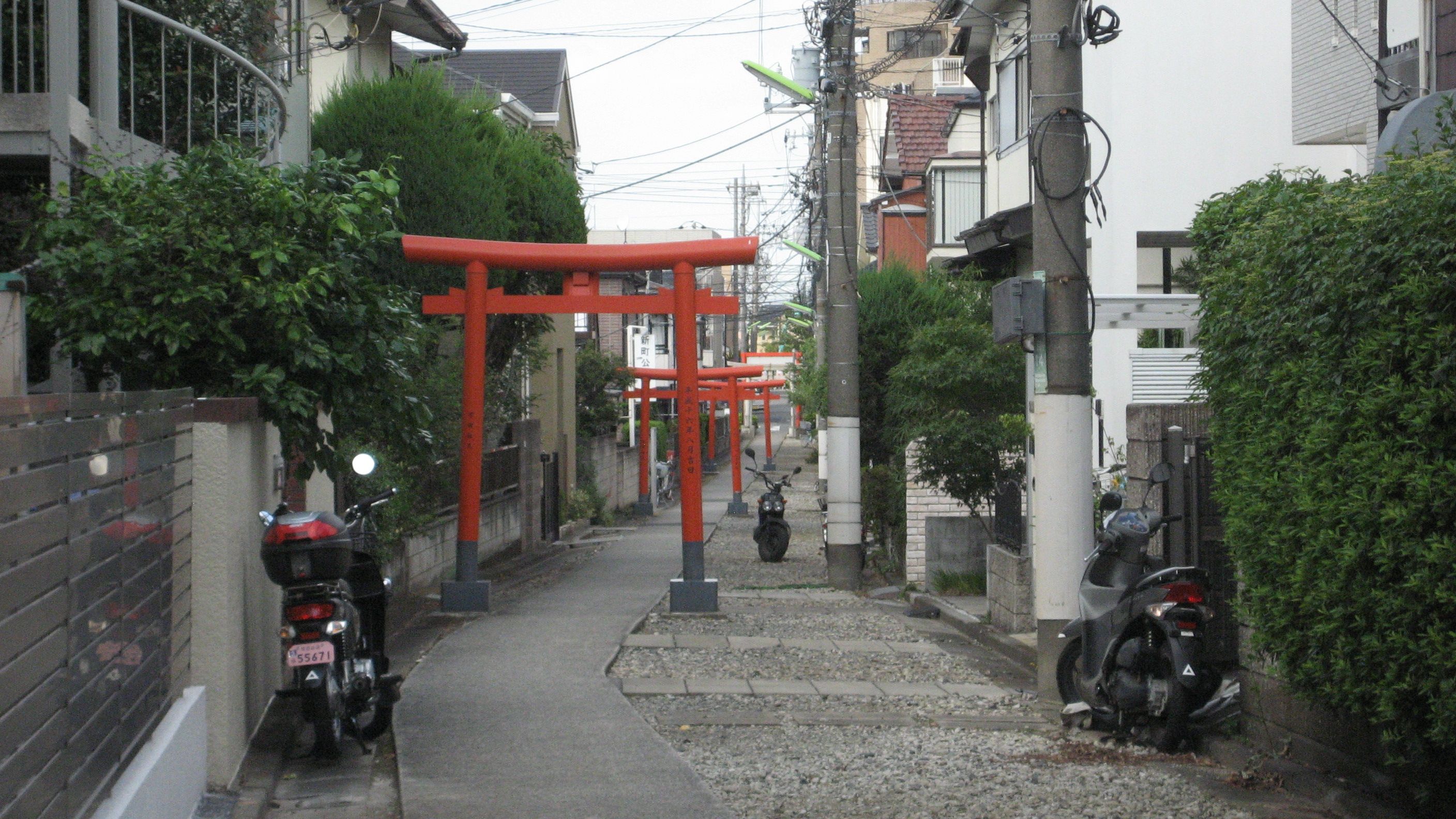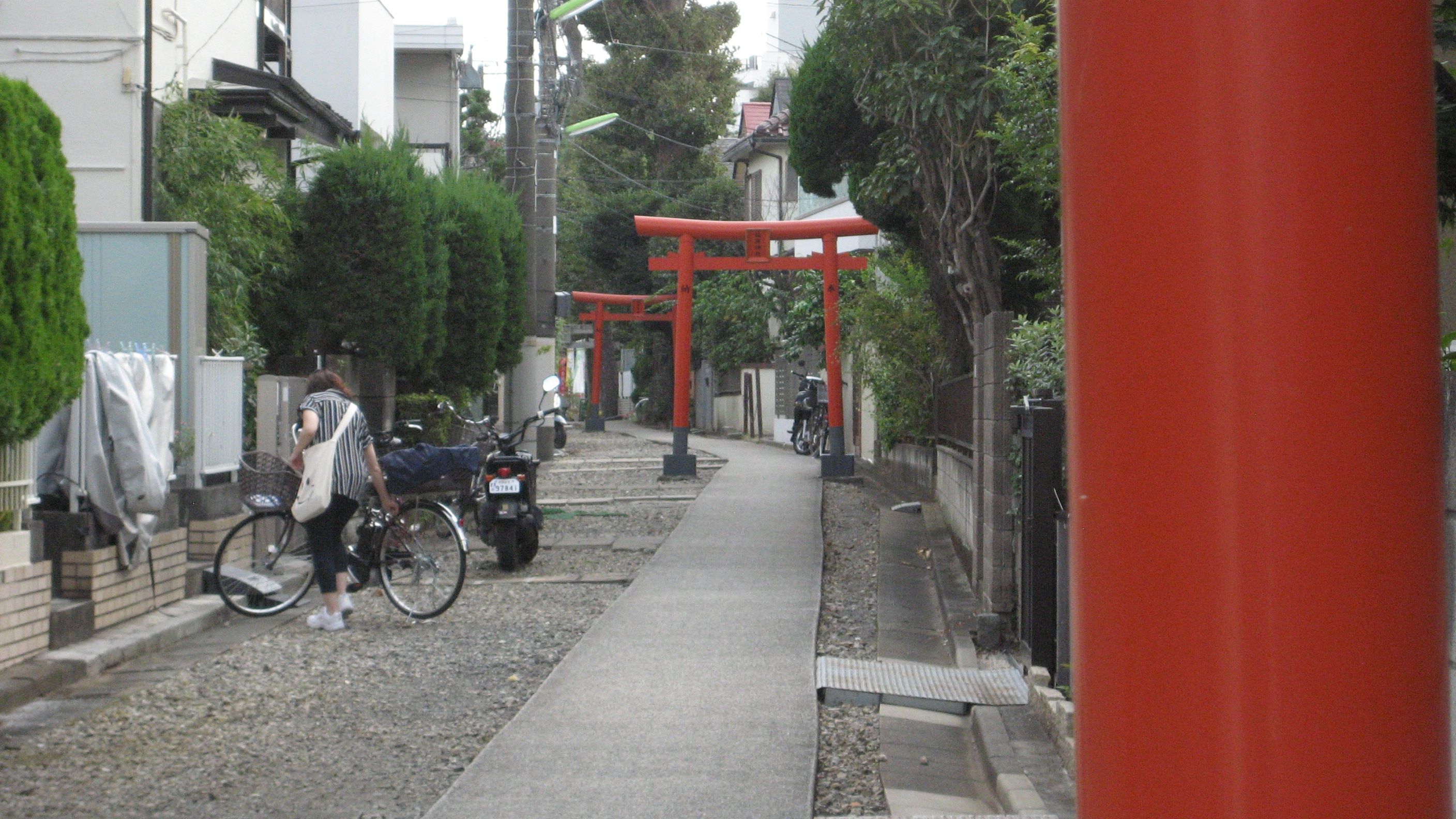 立ち並ぶ住宅の真ん中にある参道……先が見えないので「どうしよう???」としばし立ち止まる私。