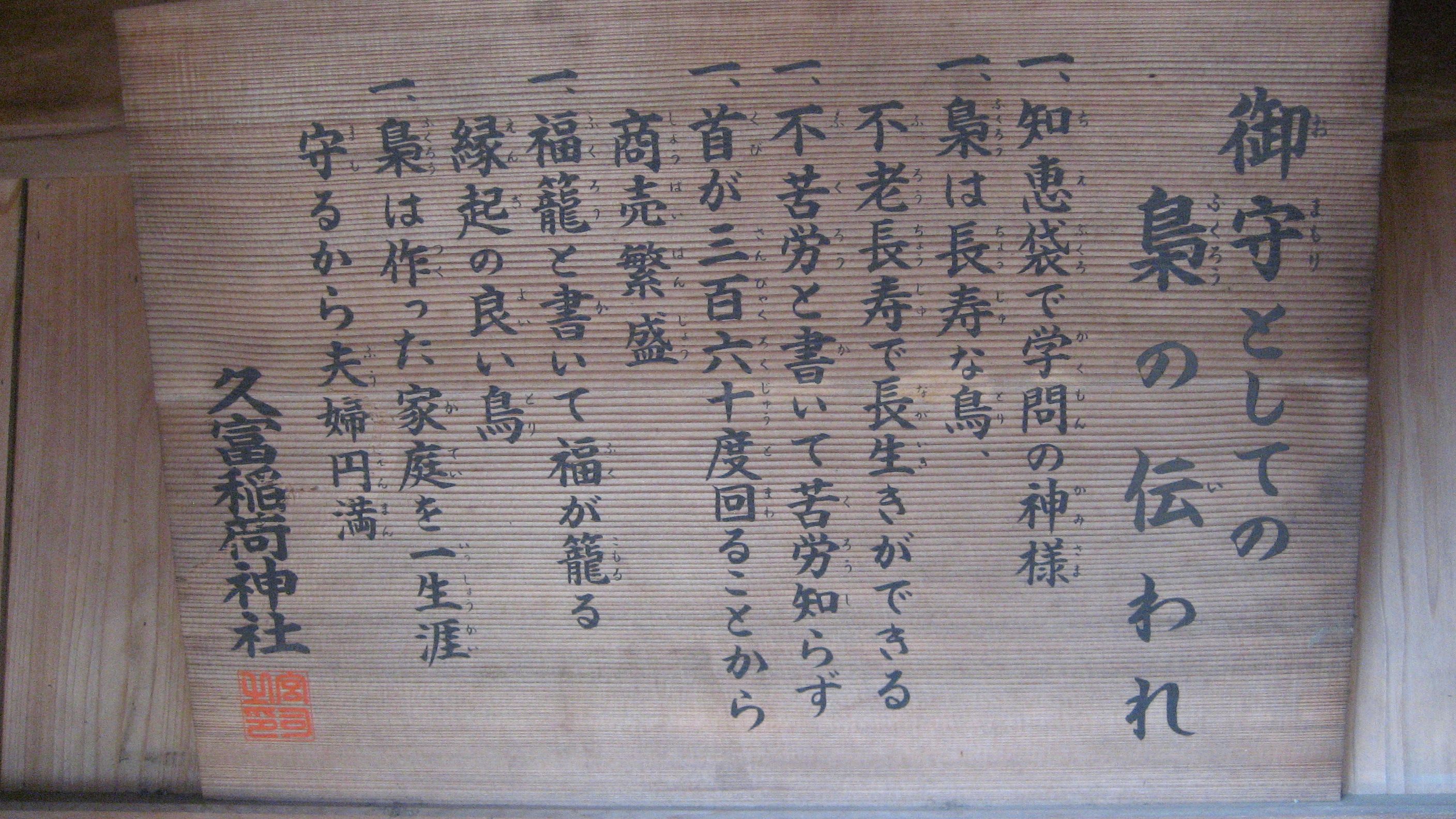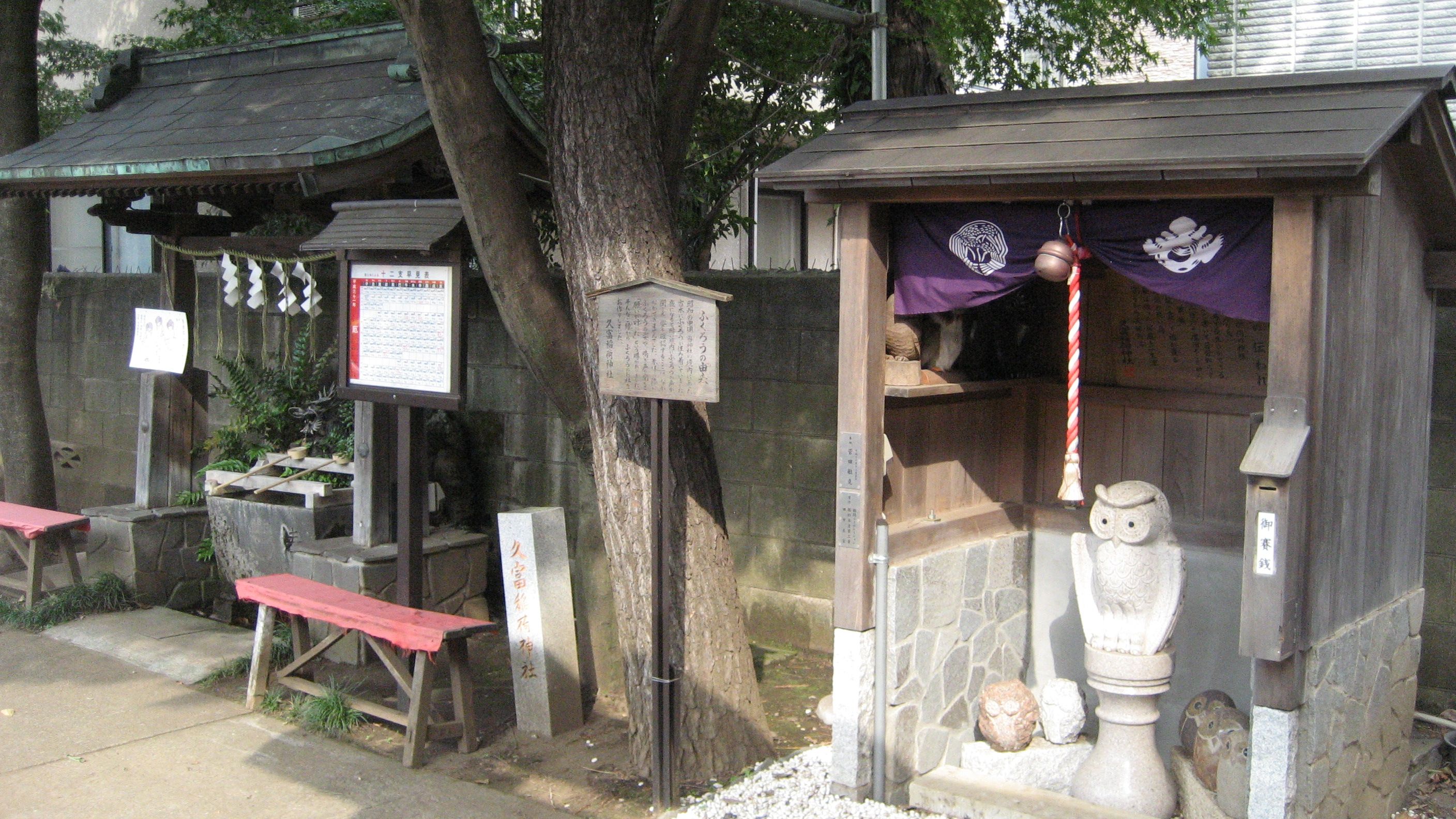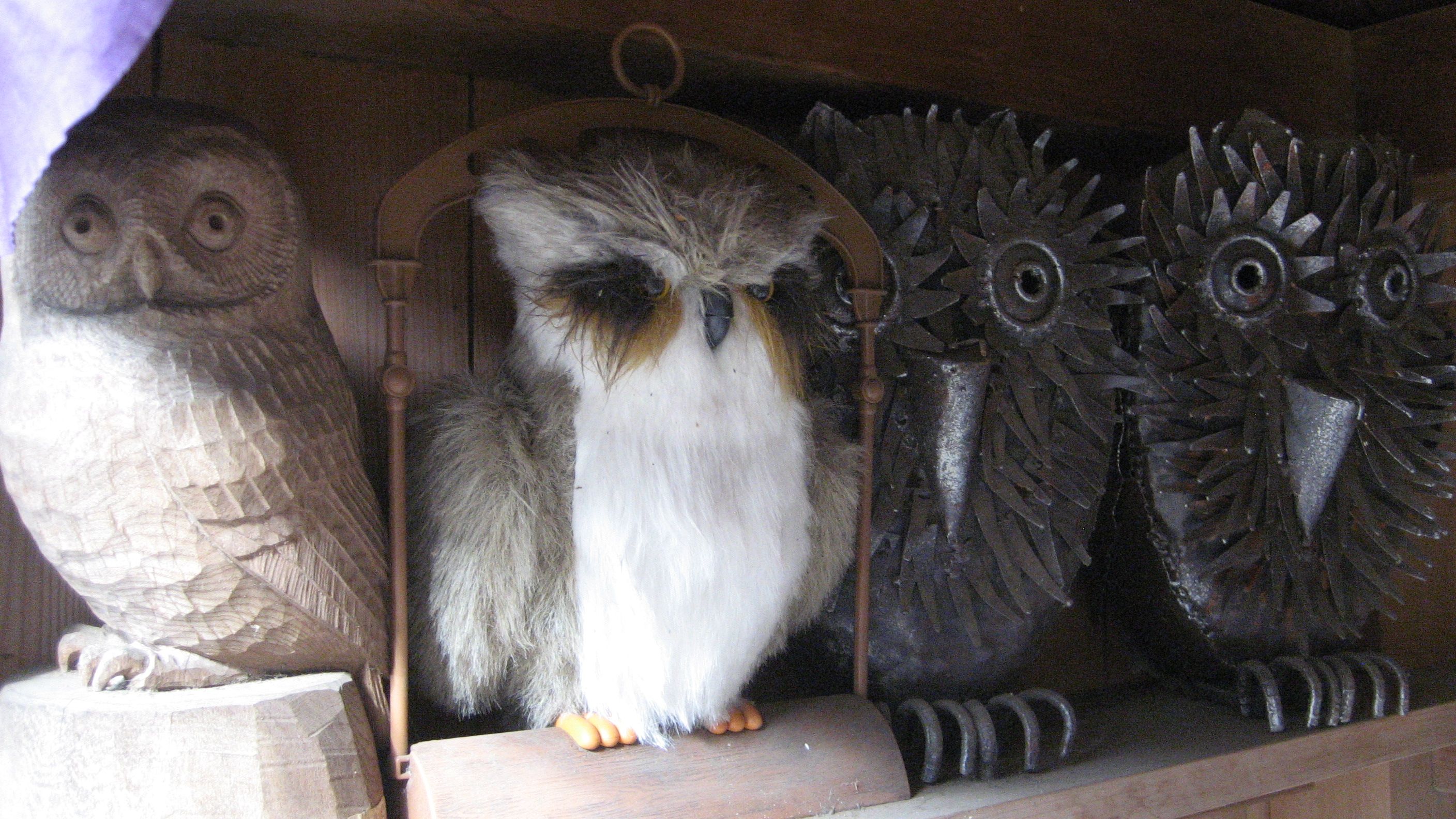 フクロウ……昭和初期には社殿奥の木にフクロウが住み着いていたそうです。