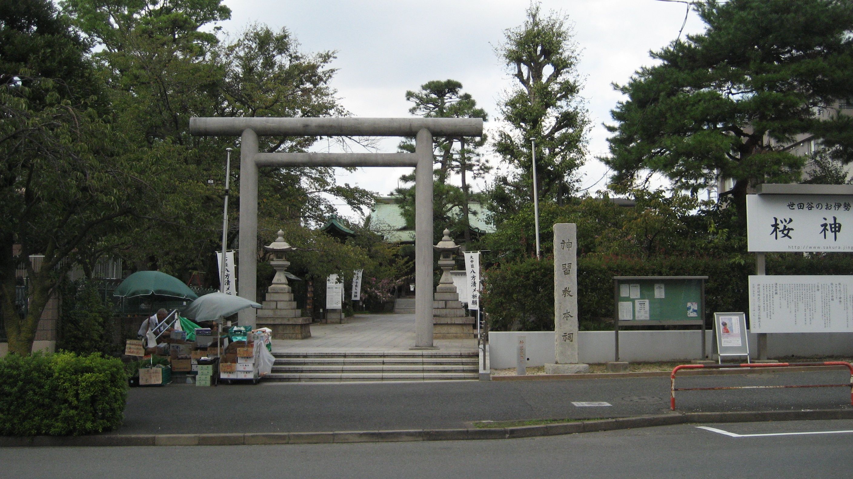 桜神宮に正対するように道を挟んで鳥居発見!……前回は気付きませんでした。本当にチコちゃんに叱られます。