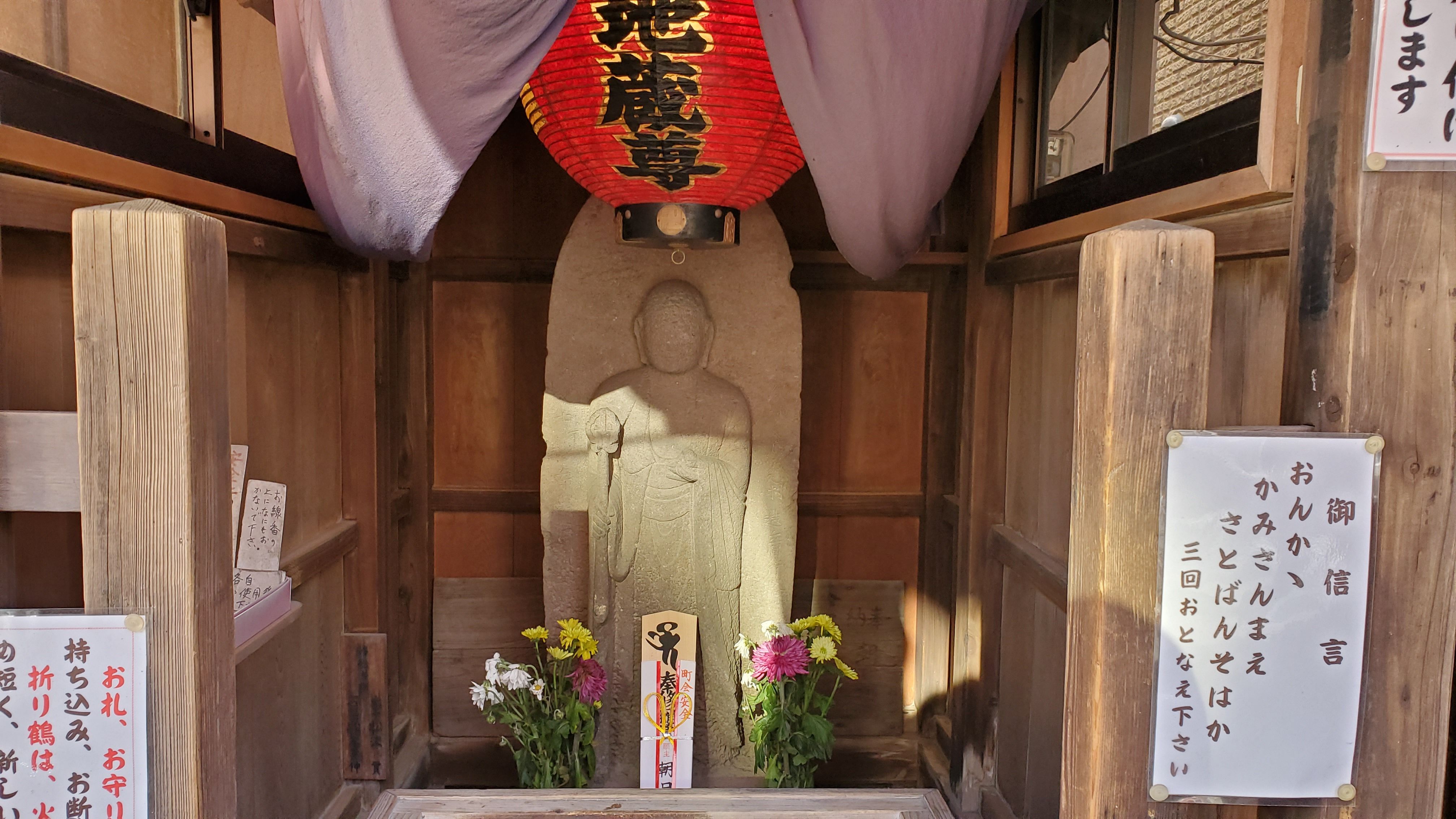 朝日地蔵尊……15時少し前だったからか? 傾きだした陽がまぶしい……おんぼろデジカメの限界……
