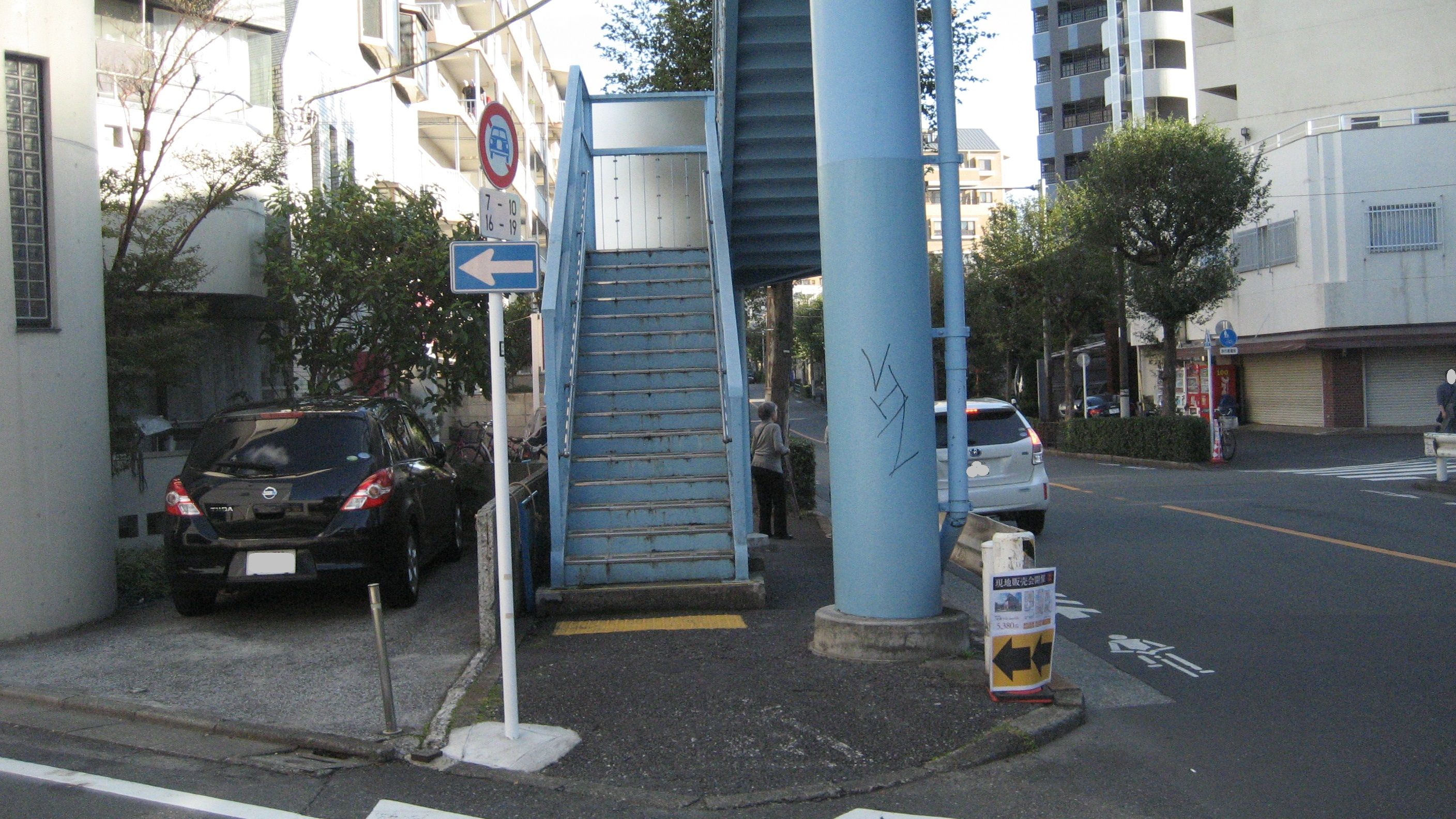 いつも思うのですが、歩行者妨害をする邪魔な歩道橋の階段と鉄柱……渡っている人を見たことがありません。右側には保育園や図書館があるから作ったのでしょうが、子ども連れやお年寄りには辛い。想像以上に車の交通量が少ないため、大方の人は歩いて渡っちゃいます。押しボタンの信号機にしてくれたら良かったのに……人に優しくない時代です。