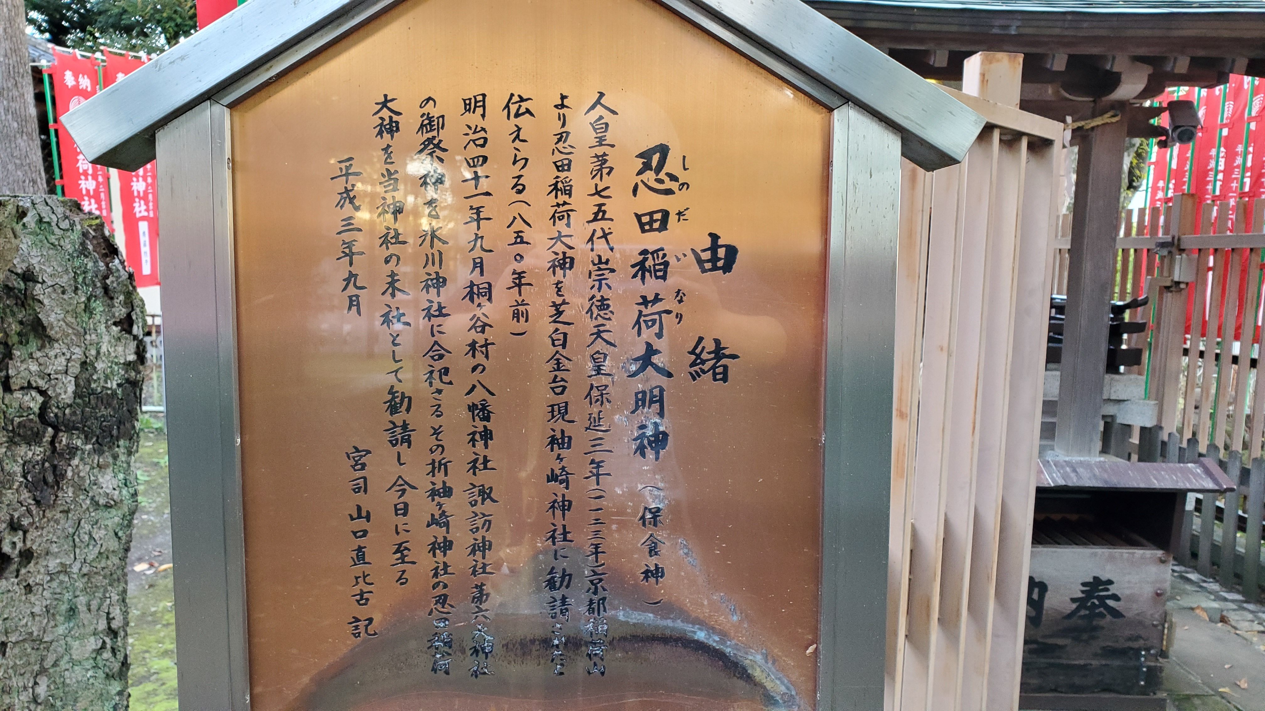 より忍田稲荷大明神を芝白金台現袖ヶ崎神社に勧請されたと