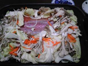 今日の晩御飯は「鮭のちゃんちゃん焼き」をしてみました。ネットで一応レシピを検索しまして、初めて作ったのですが・・・・。ホットプレートら油とバターを塗ります。半身480円の秋鮭を乗せ、野菜を乗せ蒸し焼きに。その後、味噌だれを回しかけるのですが。こんな感じで良かったのかな・・・。うどんを入れてもいいという事で、うどんも入れ。うーーーん。なぜか、思っていたのと違うんです。鮭が今一つだったのかな。想像が期待しすぎてから・・・??まあ、美味しい事は、美味しかったのですが。人、それぞれの好き好きという事で。やっぱり鳥野菜の方が好きかもしれません。味噌鍋に鶏肉と白菜の鍋ですが。うちが最近、すきな鳥野菜があるのです。ホットプレートで鶏肉と白菜を焼きます。生卵に醤油たれを入れて、つけて食べるのです。すき焼きみたい感じ。美味しいですよ。鳥やさいのたれ、というものがこちらでは売られているのですが。万能たれでも、いいのですが。晩御飯の話でした。
