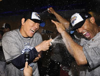 おめでとう!!ヤンキース松井秀喜さん。金沢では、優勝が決まってから号外が出たそうです。この場面で、ホームラン!!すごいです。人生楽ありゃ苦もあるさ~by水戸黄門ではありませんが。あの怪我から立ち上がって。頑張った甲斐があったというもの。普通、そこまで挫折したら、なかなか立ち上がれないものなのに。なんだか、自分も頑張らないと、と。本当に、良かったです。優勝したら、パートナーとオープンカーに乗ってパレードがあるじゃないですか?もしかしたら、奥さんと乗るのかな?結婚しててよかったよ。もし、独身だったら、ゴジパパと乗っていたかも???それとは裏腹に、日ハムがサヨナラ負け。ええっ!!たけだ~~。今までの苦労は何だったのよ!!と、責めても仕方ないし、本人が一番落ち込んでいたでしょう。阿部さんの打つ気が勝ったのでしょうね。ジャイアンツは、あまりアンチな方なのですが、今年は、何だか頑張っていて、いいなと感じてしまいます。特に、松本さんの活躍を応援しています。育成リーグからの活躍。楽天のウッチーと、重ねて見てしまうのです。さあ、日本シリーズどうなるのでしょう。