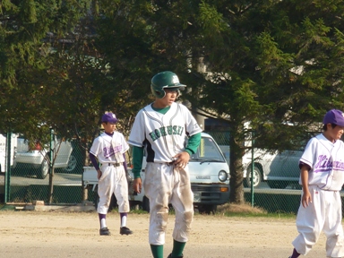 息子が中学へ入ったと思ったら、もう11月。早いものです。そして、野球シーズンも終わりました。昨日は、今年最後の大会。2年にキャッチャーがいないため、息子がしています。学童の時はストレートだけだったのですが、中学になるとカーブやスライダーが入ってきます。毎日、あざだらけ・・・。どんな球も体で止めにいかなきゃいけませんから、仕方ない事なのですが。ただ、母としたらかわいそうで・・・・。親ばかですね。でも、それなりに頑張って受けていると思うんですよ。ても、やはりパスボールもあり、ピッチャーの親から冷たい視線を感じるのです(涙)。こっちからしたら、ちゃんと、投げてよ!!1年のキャッチャーなんだから!!なんて、思ったり。でも、まあ、写真の様にじゃありませんが、彼なりに頑張っていると思うんです。それで、いいんですよね。ちなみに、球審をしているのは、学童にいた時の下級生のお父さんなんです。勝手に写真を載せてしまいましたが・・・。試合が終わってから、皆成長したね。と、褒めて下さって。ちょっと、嬉しかったです。私が住んでいる市内は旧市がいくつか合併したのですが、中の一つの旧市内の中学4校で試合をしたんです。隣の1校も参加する予定がインフルエンザで棄権。そして、優勝候補の学校のエースもインフルエンザ。そんな中で、うちが優勝したのです。なんともマイナーな大会なのですが・・・・。とにかく、4つの中学で大会をして優勝という喜んでいいのか、どうなのか・・・。子供たちはうれしそうでしたが。さあ、これで野球も終わったし。後は年末に向けて、掃除とネットオークションに力を入れる事にしましょう。