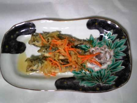 インフルエンザが、まだまだ流行っていますね。息子の学年も4クラス中、2クラスが学級閉鎖となりました。本当に、この先どうなるのでしょう。うちも、やっと今日から登校です。木曜の朝に熱が出て、木金とねていましたが、土曜には元気になりました。そして、日曜には釣りへ行ってしまったのです・・・。本当にもう・・・。リレンザを飲みながら釣りに行くバカがどこにいますか。止めても、さっと行ってしまうし・・・。普通なら、ダンナが止めてもよさそうなものを、一緒に先頭になって行くのですから。情けないです。ここだけの話ですが・・・。きっと、ぱっと熱が出たら引くのも早いのでしょうね。休みの間の宿題に追われていた昨日でした。その釣りの釣果です。12センチ位の小アジです。唐揚げにして、南蛮漬けにしました。今、気付きました・・・。唐辛子を入れ忘れました。今から、入れよう・・・。本当は料理もしたくないのですが、せっかく釣って来たのだし・・・。それから、この皿ですが。数年前に、九谷茶碗祭りで2千五百円で買ったものです。手作り感があって、きれいと一目ぼれして買いました。写真様に、久しぶりに出してきました。茶碗祭りも長い事行ってないなあ・・・。本当に、色んな事がある今日この頃ですね。明日は仕事で、除雪の契約に市へ行かないと。雪の知らせが近いのでしょうか。寒くなりました。皆さんも体に気をつけて下さいね。