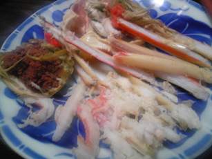 昨晩、蟹が解禁になり、今日店頭に並びました。北陸のプログは蟹の話が多いのではないでしょうか。さすがに「ずわい蟹」(加能がに)は一杯が1万2万とするので手が出ません。メスの香箱がに(せいこがに)は、千円前後で買えます。それに、蟹味噌に外子と呼ばれる卵もあり、絶品。私は、5杯で千円のものを買いました。生を買い、自分で茹でます。でも、1杯200円ですから、小さい!!。むくのも大変ですが、仕方ありません。実は、10杯買ったのです。小さいので、7杯を3人で完食。残りの3杯は甲羅に身を詰めて、糸でしばり、今度の鍋のために冷凍しました。あーーー美味しかった!!珍しく、白エビもあっので、それは唐揚げに。富山の名産です。甘エビの半分くらいの大きさ。色が白いのです。小麦粉をつけて、油で揚げます。塩をパラパラとふりかけて。これもまた、絶品。涙が出る位おいしいのです。1パック400円ですが、お店で食べると10匹位揚げてあって、500円位しますから。こんなメニューの日は、やはり日本酒。立山を小瓶で買いました。ダンナは、沈没しています・・・。「こんな、経済状態のなか、今年も解禁といって、小さいけど、香箱がに食べれてよかったな」と、しみじみ話す、ダンナでした。本当だなと、私も同感。何万の蟹なんか、食べた事がないけど、香箱を、こうやって食べる事が出来て、幸せなのかなと、思ったのでした・・・・。でも、本当に美味しかったです。冷凍した、蟹で鍋をするのが、今度の楽しみとなったのでした。