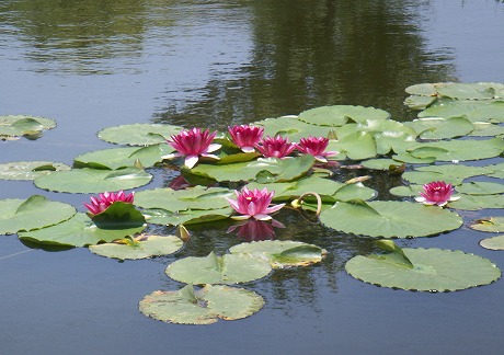 睡蓮咲く時期なのですね。昨日は衣替え、新中学1年生の孫、中耳炎で3日ほど学校休むはめに、お医者さんの許しえて登校するだけがいっぱいで、そのこと忘れ黒い上着着用は一人だったそうです! そういえば子供が巣立ってから、衣替えは死語でした。 洋服は和服とちがい、季節より寒暖にあわせて着てる方のほうが多いのでは!今日はマッサージに行ってきました。又も途中居眠り状態で、自分でほっぺつねりながらうけてきました?~~~ 昨日お使いの帰りによりました公園では、睡蓮が咲いて鯉がゆうゆう泳いでいました。