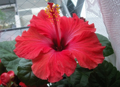 ハイビスカスとクロサンドラ 窓辺の花が増えていきます。暇ができますとご近所のお庭拝見!いってます先は我がご近所と違い、比較的オープンな土地柄でお庭がよく見えます。そのせいでしょう!?皆さん力がはいっています。娘の家とはいいましても勝手にお庭にお花入れますのも気が引けて、窓辺に並べています。期間が長くなりますと増えますね。咲き終わりますと庭にそ~と植え替えています。