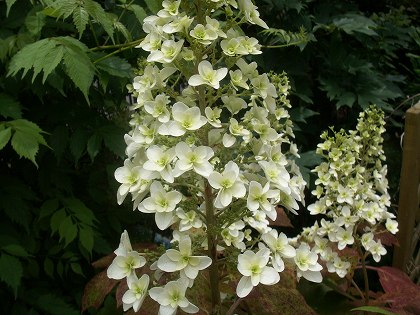 留守がちの我が家の柏葉紫陽花、水枯れで葉が赤くなっています。恋焦がれた黒のタチアオイ初めて開花香りにつられ購入しました梅花うつぎ来年楽しみ。庭にでましたら、梅雨どきに咲く姫しゃらの花が一面に落ちています。この花終り梅雨あけますと、♪♪大きいしゃらが夏椿の別称ありますように、ボタンボタン落ちてきます。 初夏!お花に支えられ四季感じているようです。♪♪黒のタチアオイ昨年苗で頂き失敗し、種から蒔きまして、ようやく細い木に蕾つき咲き始めました。 ♪♪梅花ウツギ、庭に入れる場所も限られ、購入はやめようと思うのですが、香りが私を呼んでました!?~~♪♪♪♪