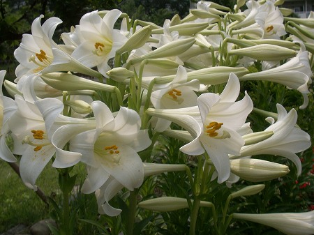 小田原フラワー園で見た百合 常駐してます娘の家のお隣さんのお庭で、それは見事な百合を見、里心がでまして今帰宅し我が家の百合見ましたら、お世話なしの花は細々しています。芝の上に沙羅の花が一面に落下し、先週は姫沙羅が落ちて、掃除したばかりでしたが!花も咲いてるときは良いですが、落下後は嫌ですね !? 当り前ですが・・・でも紫陽花墨田の花火のそばに、房スグリの赤(博士の書き込みで朝鮮萩といただきましたが、)それも満開、しみじみとささやかな我が家の庭を鑑賞しています。孫のアッシーも楽しいですが、自分のための時間も又良いものです。明日沙羅などをアップしたいと思っています。