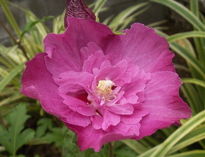 娘宅に移植したムクゲの花満開昨日お買い物に出かけましたとき、スコールのような雨、青空駐車場は一面池状態でした。 各地で被害もでてますものねね、梅雨最後の大雨?こちらに帰るとき高速であのような大雨に逢ったら恐いと思いまして、早めに帰ってきました。 幸いにも降られず助かりました。今下の孫から湯で豚のお肉凄く硬くて!電話ありました。娘可愛さに一品手助けしましょうと、朝早くからトロトロ煮ておいてきましたのですが、(落ち込む)なかなかうまく行かないもの....我が家の庭から「ムクゲ」を抜いて、娘宅に移植したのです。ハイビスカスの仲間とは思えない地味さですが、色が好きなムクゲ。 By GT-ONE