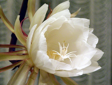 今年も咲いた月下美人・・・香り少し足りないかな!留守にしています間に、今年の月下美人だれの目にも触れられる事もなく咲き終わっていました。でもこれから次々咲くわと慰めていましたら、昨夜咲いてくれました。でも心なしか香りが足りない感じ、今年はお花の世話も手抜きです。やはり花にもわかるのでしょうか!この所楽天の送信など時間かかり、いらつくことあるのですが、連れ合いのブログブロバイダーは○フー。昨日からとらぶっています。比較的楽天さんと違ってトラブルが少ないのですが、ところがトラブリましたら、楽天と違い問い合わせ場所が探せないのです。大手はいちいち答えていましたら大変?