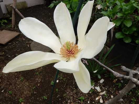 ヒヨドリから逃れた赤木蓮蕾、開花! そして最後の黄木蓮の花もアップ。