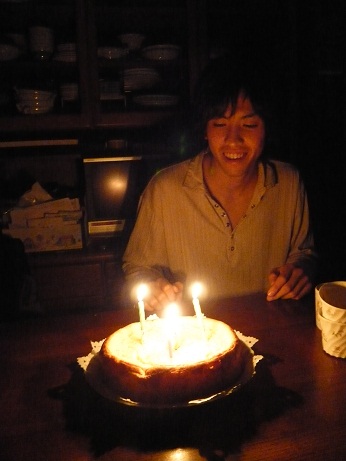 やっと画像がまともに入るようになったので、UPできます。元旦は息子の誕生日息子はこのチーズケーキが一番好きです子育て仲間の親友が教えてくれて、唯一おねえちゃんがレシピを見ないでつくれるケーキ分量も全部頭の中に入っていますもう21歳なのでろうそくの大は10の単位、小さいのが一つで21ということにしました。クリスマス用のバンビで飾りをごまかして、ふ~っと吹けばまあお誕生日気分でしょう。受験生の娘が無事に巣立つと、今年は子育て最後のお正月おせちは娘の大好きなくりきんとんを母ミヤコ作の紫いもで作ってみましたかなり手抜きも入っているので、凝視しないように