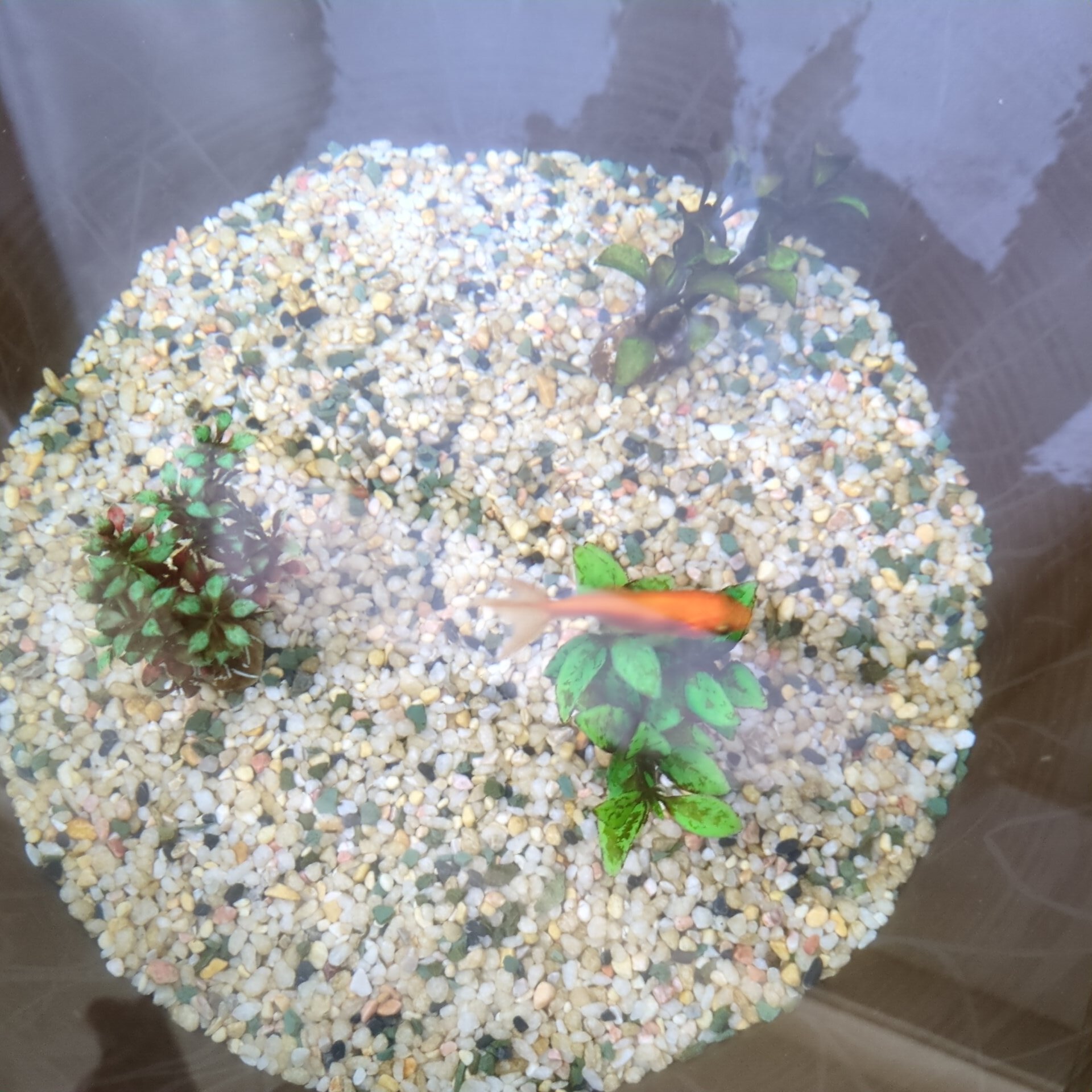 午前中だけちょっと日が当たる睡蓮鉢の中で生活しています。近頃、真静ちゃんの体色が色鮮やかになってきました。これはおそらく、太陽光のパワーのおかげだと思います。
