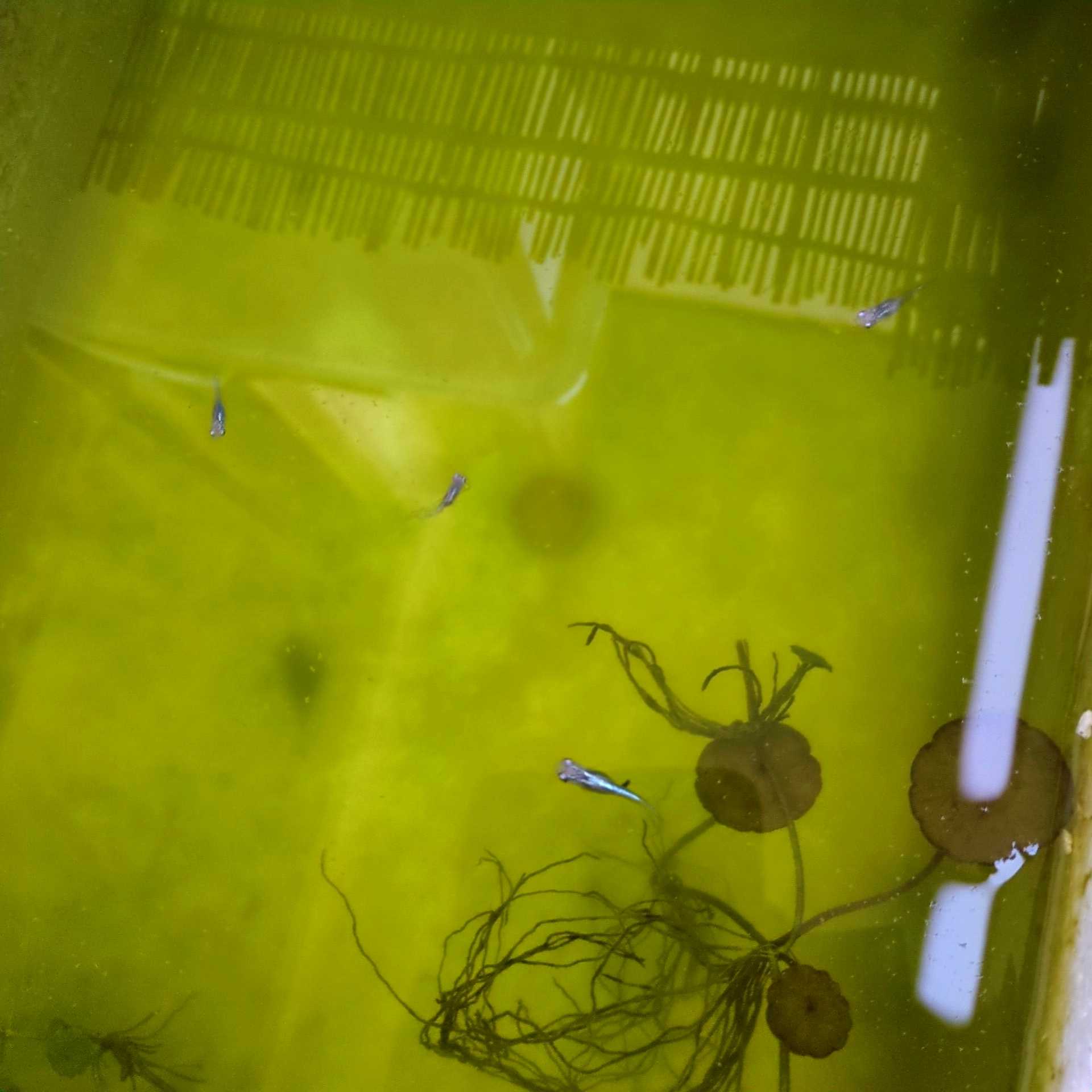 匹数が30匹以上いたのに5匹まで減ったことで警戒心MAXになってしまっていたメダカの稚魚たち。私が餌やりの時に飼育容器の覆い(フタ)を取ると逃げてしまうので、フタを少し浮かせて隙間から餌を投げ入れてすぐ閉じてそっとしておく…足し水や掃除は最小限、なるべく静かに…を心がけていたら、今ではすっかり打ち解けました(笑)今では5匹とも、怖がることなく水面に浮かんで姿を見せてくれます。過密飼育でなくなったことで青水が薄くなってしまいましたが、足し水や掃除を最小限にしたことで青水が保てているので結果的に良かったかな?と思います。この後、餌やりをしながら観察をしました。過密より、ゆったりと泳がせる方が見た目は良いなと思いました😅こちらのメダカたちに与えている餌はこちらです↓【11/1限定】当選確率2分の1!1等最大100% キョーリン ちびっこ メダカ キンギョのエサ 30g お一人様50点限り当ブログは、にほんブログ村に登録しております。もしよろしければ↓のバナーをポチッとお願い致します♪