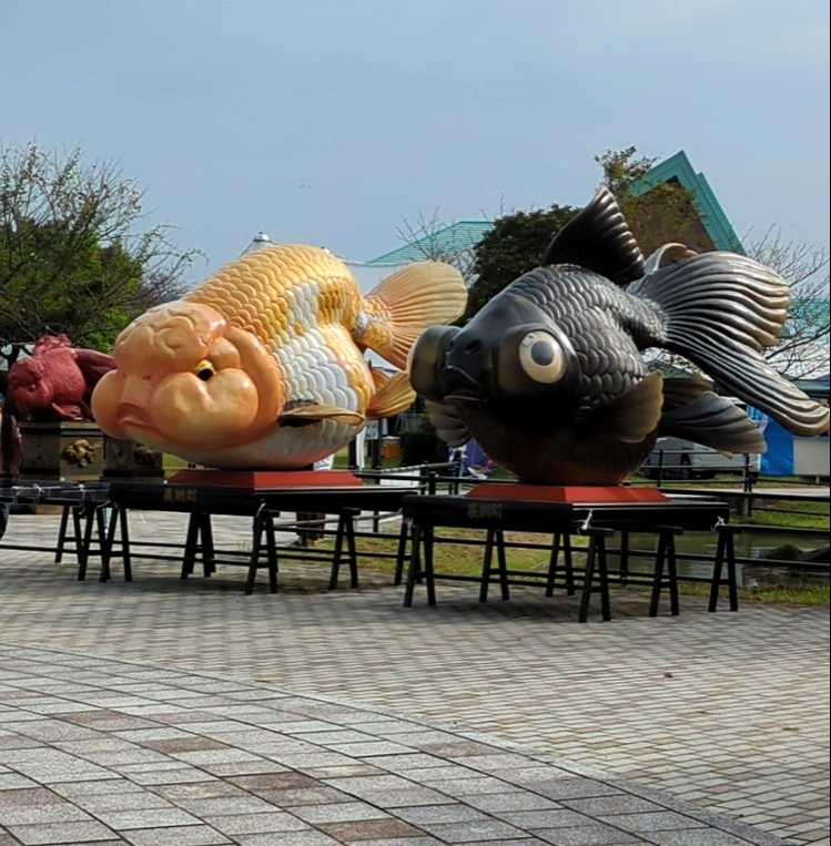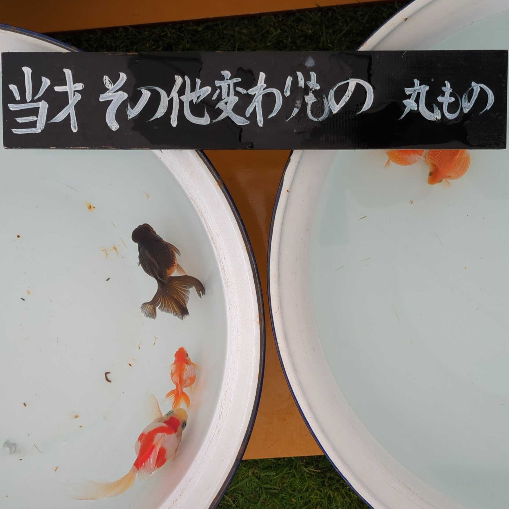 本日は、10月18日・19日と熊本の長洲町で開催された『第38回金魚と鯉の郷まつり』に行ってきました!たっぷりの現地写真と共にお伝えしますので、参加できなかった方もいった気分になって楽しんで見ていただきたいです。また、5月に行った長洲町の金魚まつりのレポートとちょっと形式を変えます。金魚の即売会のレポートがメインなのは変わりませんが、前編は琉金やらんちゅうといった丸物金魚の紹介、中編は和金や朱文金などの長物金魚やその他販売魚の紹介、後編は同時開催の第57回金魚品評会の出品魚の紹介、そしておまけとして、購入品(お土産)編をお届けします。本日は前編!金魚即売会の丸物金魚たちについてレポートします。どんな金魚が販売されていたのか?じっくりご覧になって、次回参戦予定の方は是非参考にしてみてくださいね。 それではレポート、スタート! 10月19日(日)、天気は曇り時々晴れ。朝9時10分ごろ、イベント会場である金魚と鯉の郷広場に到着。イベントは10時からですが、かなり早く現地入り。それでも、すでに金魚を買って帰っているお客さんと何人もすれ違いました。巨大金魚のオブジェが、今回もお出迎えしてくれます。セメント池にはウェルカム金魚。のびのびと泳いで気持ちよさそう。会場に入っていきます。5月のイベント同様、たくさんのテントが並んでいます。芝生の広場の真ん中が品評会のエリア、左サイドが飲食露店のエリア、そして右サイドが金魚即売会のエリアです。5月のイベントでは、真ん中のエリアが金魚すくい選手権のコーナーでしたね。まず、右手の金魚即売会のエリアへ。人出は5月のイベントに比べると少なめです。5月の方はゴールデンウィークの開催でしたので、県外の人も多く来られていたのでしょう。(5月の方は土曜日の朝8時過ぎに行き、今回は日曜日の朝9時過ぎに行きましたので単純に比較はできませんが…)ゆっくり金魚を選びたいなら10月の方がおすすめかもしれません。さて、会場の概要紹介はいよいよここからは販売魚のうち、丸物金魚をざっくり品種別、体型別にご紹介していきます。長洲町で金魚を生業としている事業者の皆様のご自慢の金魚たちを吟味していきましょう!【琉金】まずお出迎えしてくれたのが、こちらの抜群に色が揚がった素晴らしすぎる江戸川琉金。キャメルバックを見せつけながら泳いでいます。こちらも尾形が素晴らしい2才の琉金。まだ大きくなりそうですが、すでに迫力があります。もうちょっとリーズナブルな琉金も。顔が黄色くて栄養状態が良さそうです。ハイレベルな金魚だけでなく、初心者向けの金魚ももちろんラインナップ。5cmくらいのかわいいサイズで300円。こちらのやや小さめな桜琉金もかわいい。大きく育てる楽しみがありそうです。プリプリに太ったミルク琉金も。ガラス水槽でも見てみたい。こちらはキャリコダルマ琉金。ショートテールで良いのかな?餌を爆発的に食べそう(?)こちらもキャリコ琉金、ショートテールですね。500円とリーズナブル。↑の水槽の横見。長手の琉金も良いですね。【玉サバ系】私がいつか飼ってみたい金魚、玉サバもたくさんいました。キャリコ玉サバ、見ごたえがあります。カラフルで迷ってしまう玉サバたち。泳ぎ方がキレイ。「玉サバ」の改良品種である福ダルマもいました。いやあこれはかわいすぎる。【東錦/オランダ系】鈴木系の変わり東錦、2才魚。黒シリコンのノンフレーム水槽がお似合い。こちらも鈴木系東錦とのこと。屋内で飼えばもっと墨が揚がっていきそうですね。ハイクオリティな鈴木系東も。鈴木系の特徴が出ていて美しすぎます。ローズテール東錦とトリカラーオランダの目移りする水槽。こんな水槽が家にあったら楽しいだろうな。初めて見た、ゴリラオランダ。本当だ、ゴリラみがあります。【らんちゅう系】金魚の王様…らんちゅう。迫力に言葉を失います。↑の接写。品評会レベルですよね?こちらも大きならんちゅう。↑の接写。ぐうの音も出ませんごめんなさい、ピンボケ写真ですが安心してください、かわいいサイズとお値段のらんちゅうもいますよ!↑の接写。好きな仔はいますか?こちらもリーズナブルな小さめのらんちゅう。↑の接写。小さくてもやはりらんちゅう。鱗の輝きも美しいですよ。桜錦。私が好きな金魚の品種のひとつです。いつか飼ってみたいな~。立派な江戸錦、この値段で良いんでしょうか。人気なのか、残り数匹になっていました。【ピンポンパール】やっぱりかわいいピンポンパール。たくさんいましたが、ほんの一部をご紹介!↑の水槽の横見。しっかり泳いでいます。琉金みたいな感じの子もいて、何だか面白い。毬のようなキャリコ柄のピンポンたち。必死に餌を探しています。こちらもしっかり泳いでいるピンポン。写真を見て思いましたが、フナ尾の仔が混ざっているような気がします。ぎゃあ。豆粒大のピンポンさんがたくさん。これはプリプリのプリティーです(壊れた)。↑の接