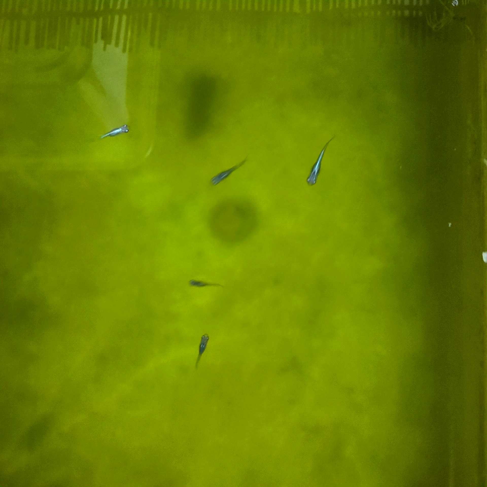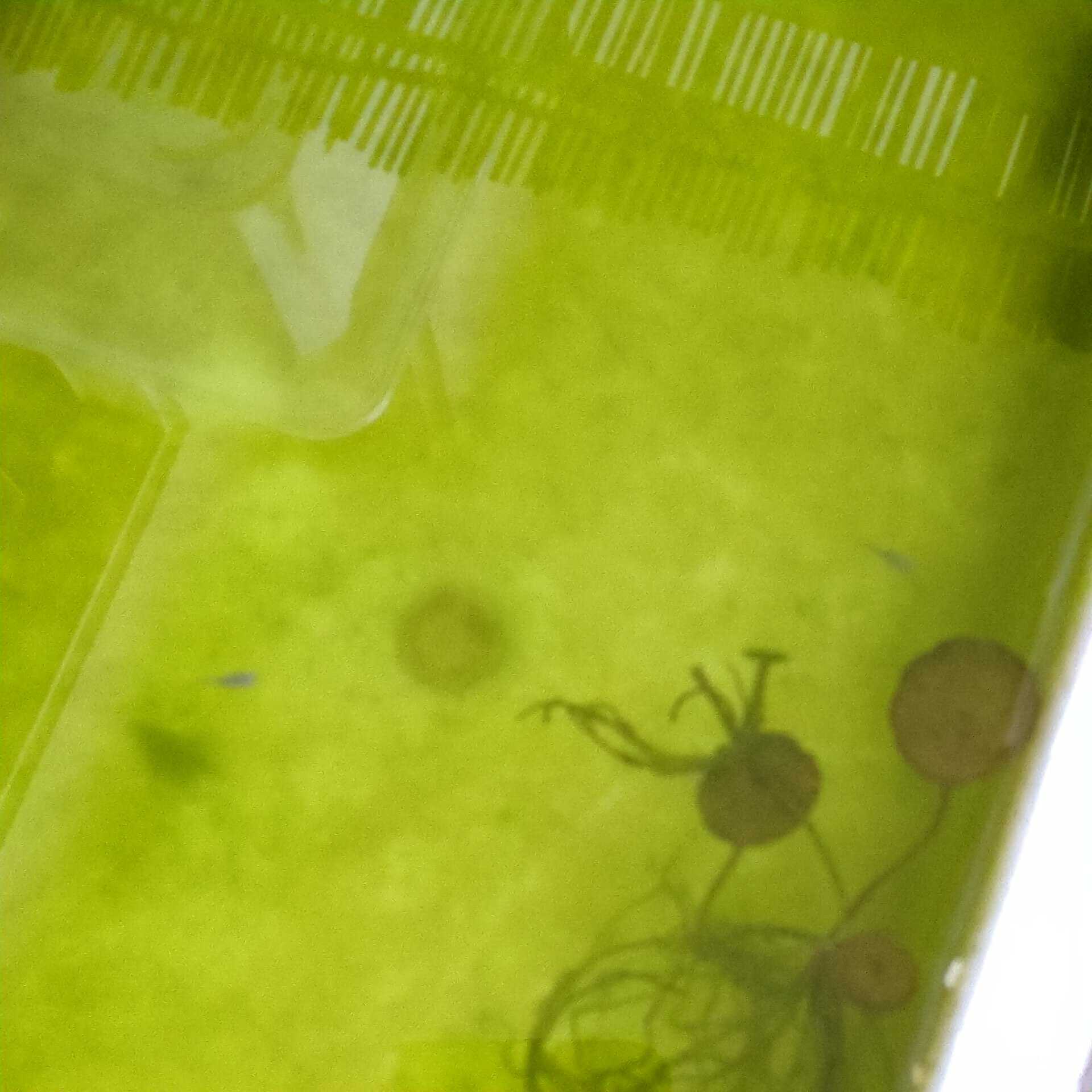 先日お話したように、たくさんいた我が家のメダカの稚魚たちを一部人に譲りました。この発泡スチロール容器はかなり過密で飼育していて、直射日光がほとんど当たらなくてもいつも↓このように青水でしたが…人に譲って数が減ったところ、たった数日間でこのように青水がめちゃくちゃ透き通ってきました。というか、数日どころか翌日にはもう飼育水の透明度が違って見えました。容器の底に酸素の出る石を入れてあるので、その見え具合を見比べていただけると一目瞭然だと思います。ニッソー 金魚・メダカ酸素ぷくぷく 8錠 関東当日便数が減って人見知りになってしまった稚魚たち。でもゆったりしていて逆に良さそう。(数が少ないといじめが起きないかは心配ですが)このくらいの薄めの青水を保っていければベストですが、このまま時間が経ったら青水ではなくなってしまいそうな予感がしています。青水の維持のためと管理を楽にするために、もしかしたらこちらの容器にメダカを追加するかもしれません。(生餌)グリーンウォーター 500ml(3本) 北海道・九州航空便要保温当ブログは、にほんブログ村に登録しております。もしよろしければ↓のバナーをポチッとお願い致します♪