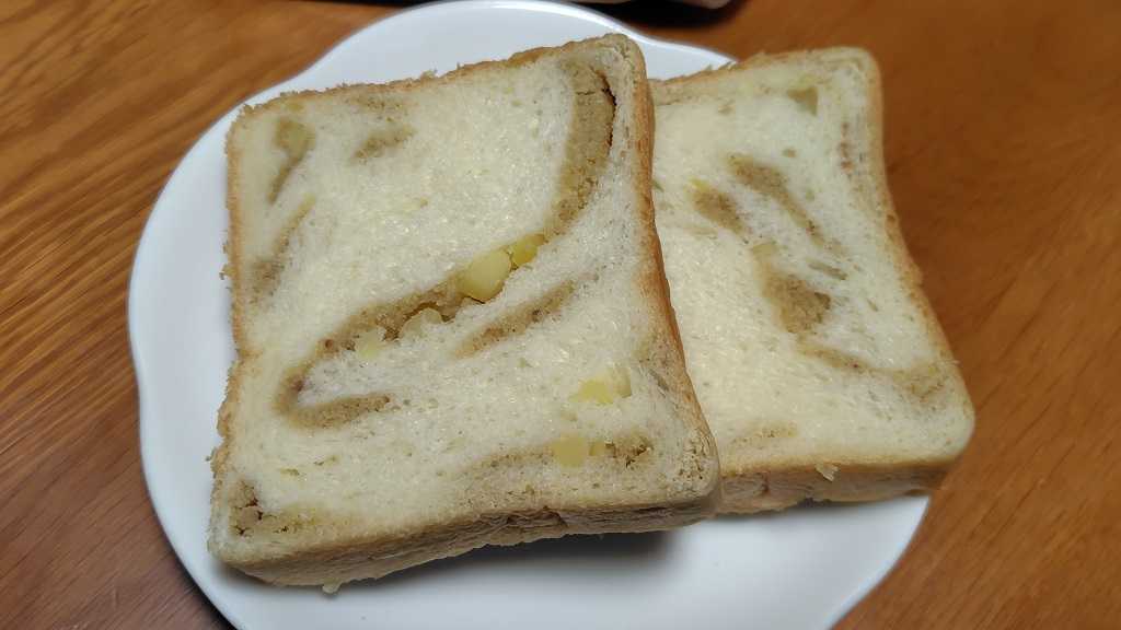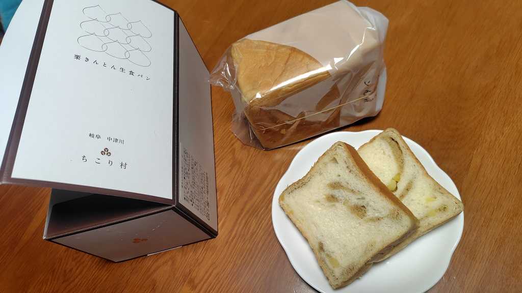つい先ごろもテレビで紹介されて話題になっている「栗きんとん生食パン」を売っていたので、奥さんへのお土産に買って帰りました。