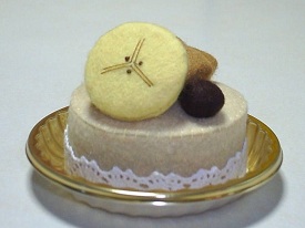 今日もフェルトスイーツのミニケーキで、キャラメルバナナケーキです♪キャラメル風味のスポンジケーキに、キャラメルクリームをのせて、輪切りのバナナとチョコボールを添えてみました。『キャラメル』ってつくと、何かすごくおいしそ-な感じがするんで、今回はバナナと組み合わせて作ってみました。