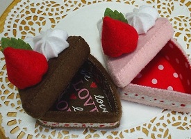 今日はフェルトスイーツで、スイーツBOXです♪今回のスイーツBOXは、オークション用に作ったものです。インテリアとして置いていても可愛いフェルトケーキですが、アクセサリーなどの小物入れとして使えるフェルトケーキのプチBOXです。今回は、チョコケーキとイチゴショート(ピンク)の2コSETにしました。