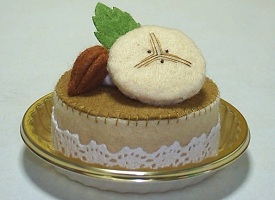 今日はフェルトスイーツのミニケーキで、アーモンドバナナケーキです♪クリームを色を変えて作ると、アーモンドとして代用できるので、今回それを使ってみました。
